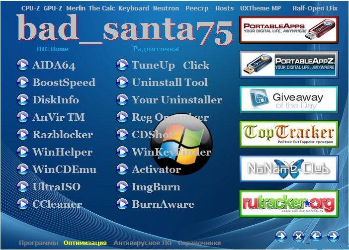 Uninstall Tool 3.2.2.5287 Your Uninstaller! Pro 7.4.2012.1 Reg Organizer 5.46 Registry Workshop 4.6.0 Revo Uninstaller Pro 2.5.9 CDShot 3.5.0.1 CDBurnerXP 4.5.0.3642 InfaRecorder 0.53 ImgBurn 2.5.7.0 BurnAware Free 5.5 *************** Neutron 1.07 SumatraPDF 2.2.6856 FastStone Capture 7.3 The Calc 3.02 Экранная клавиатура © Microsoft 2.0 UXTheme Multi-Patcher 8.0 Half-Open Limit Fix 4.2