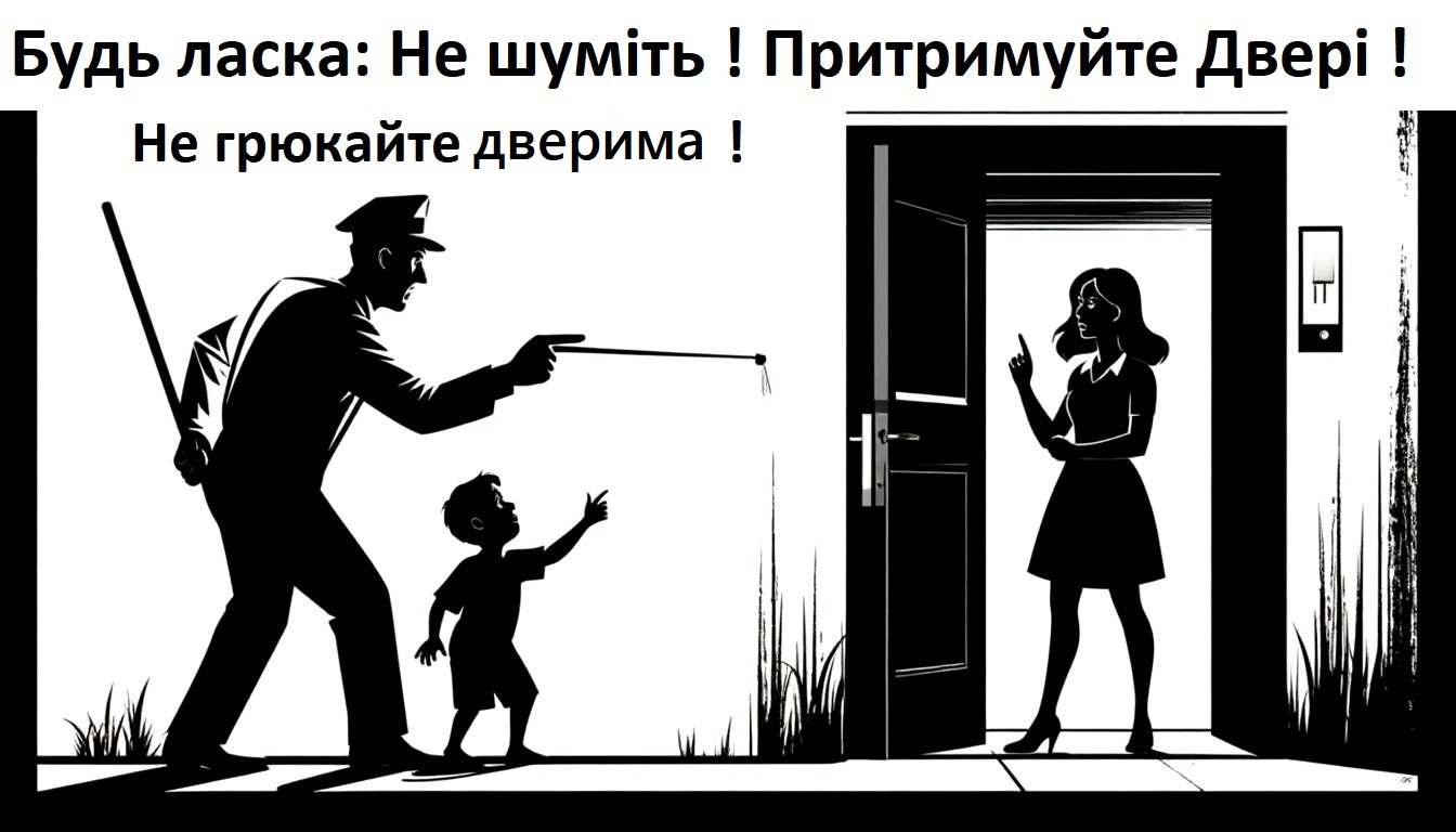 Осваиваю печатное дело.  Дом старый, бестолковый сосед пружину поставил на входные подъездные двери, терь звук при закрытии - вроде дрон со взрывчаткой сбили.  Запряг ИИ агитуху мне накидать для печати на А4. Дык хорошо что посмотрел внимательно, и зарисовал лишнее. На третьей картинке - мамочка в руке детскую голову держала.  Прикрепил к 2-м дверям с обеих сторон, кошмар как придурошные хлопают. ((