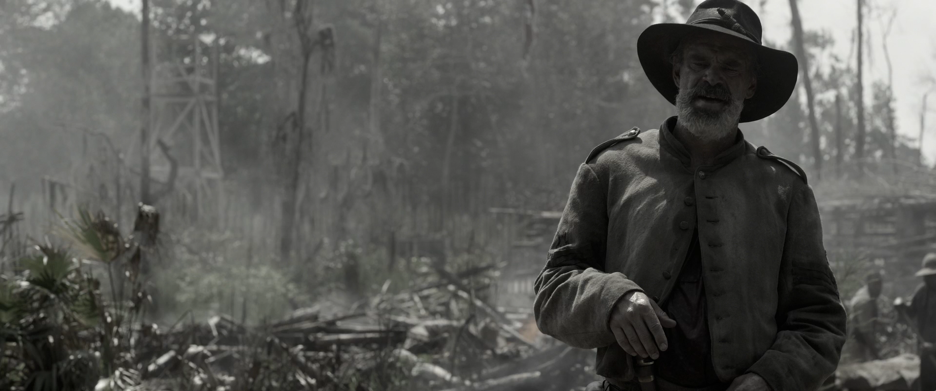 Цветопередачу как то не оценил. Весь фильм на болотах и в конце немного сражений. В красках было бы поинтереснее смотреть. В целом фильм жуткая заказная BLMщина. Оскар у ребят уже в кармане я думаю. Ну и конечно отметил, что преследователи крайне невероятным образом постоянно везде настигали беглеца на лошадях учитывая, что это болота. Т.е везде какие то дороги все таки есть. Да и любая собака бы след потеряла в таких условиях.