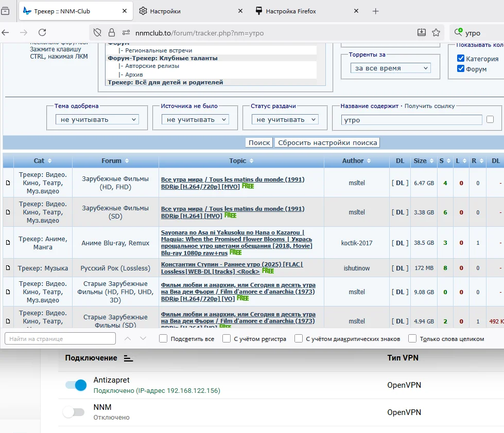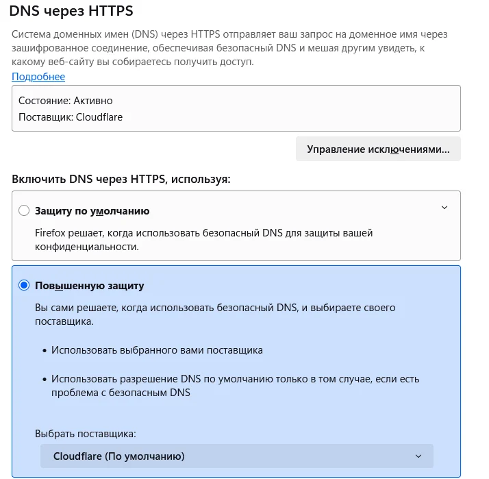 Но вы пошли другим путем. А я ведь дал понять, что не знаю все тонкости работы с Firefox, это не мой основной браузер и мне жаль на него тратить время, а тем более на некритичные функции. И не пользуюсь АнтиЗапретом, хотя и не говорил об этом явно. А еще не указали, какой именно Антизапрет-VPN используете: https://github.com/GubernievS/AntiZapret-VPN или https://antizapret.prostovpn.org/ с OpenVPN и конфигом от ПростоVPN.АнтиЗапрет, впрочем, я даже не знаю разницу между ними и жаль тратить время на попытки выяснить это. У меня больше вопросов, чем было написано возможных ответов на них, и долго тянуть за язык я не люблю. В общем, еще на несколько лет вперед отбили у меня желание помочь кому-то таким же образом в чистой и заведомо рабочей тестовой среде, если это будет необходимо и сможет помочь скорее понять суть проблемы. GCRaistlin писал(а):  | Вся суть VPN от Антизапрета - в том, что разрешение DNS-имен идет через него, а не через провайдера или Cloudflare. |