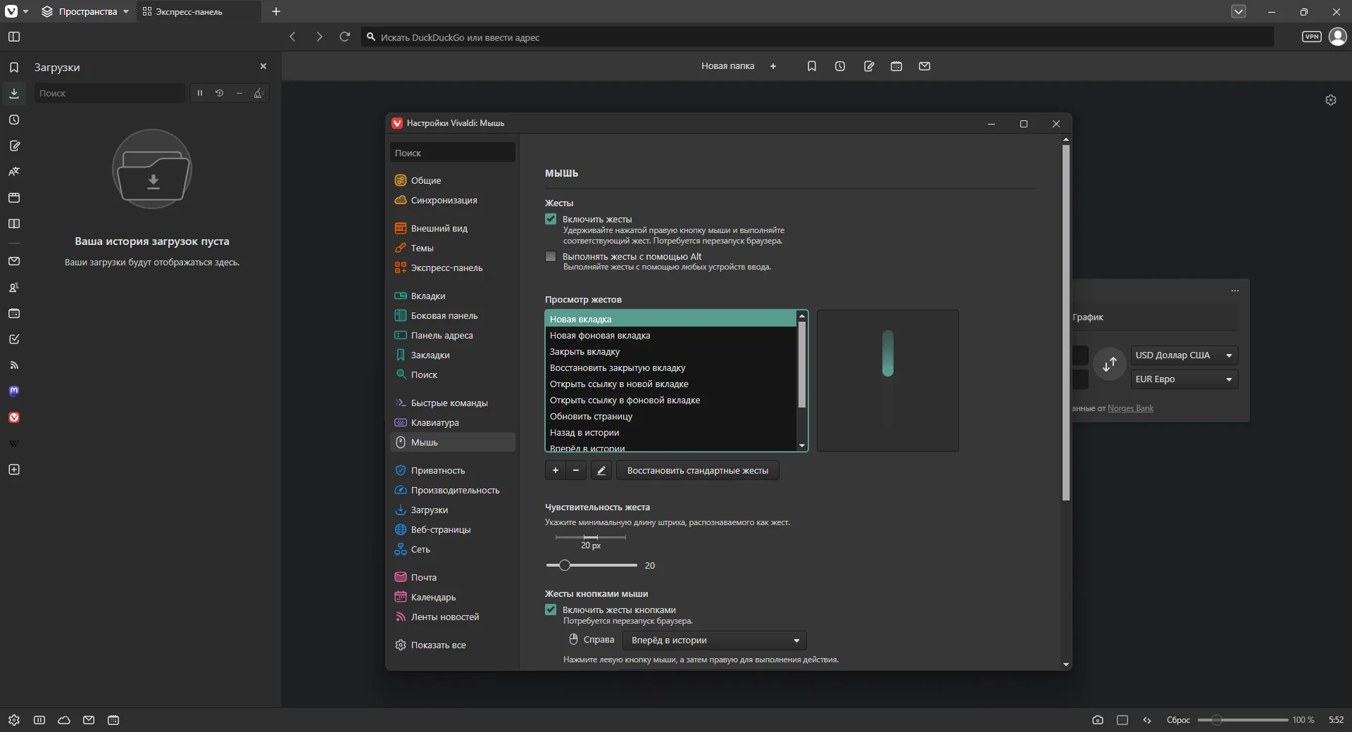 - Настраиваемые жесты мышью и горячие клавиши — всё можно подстроить под себя.