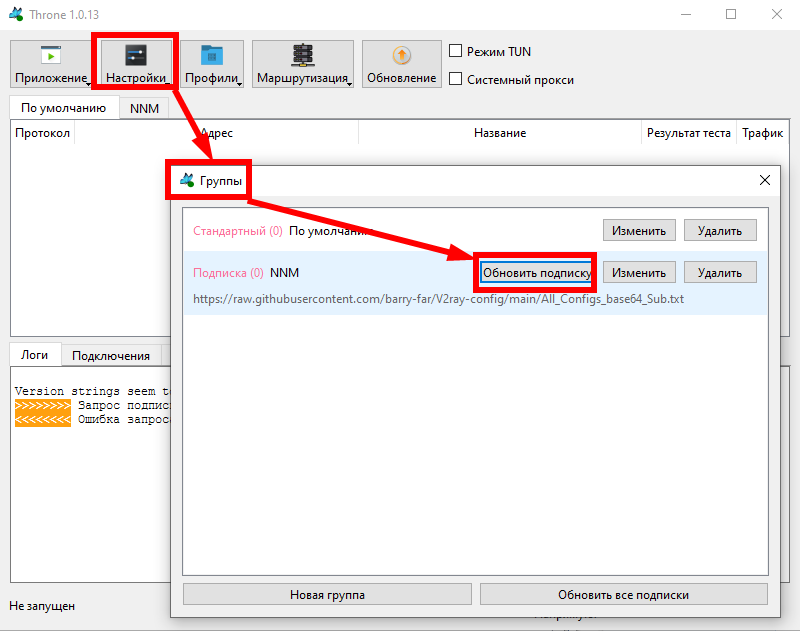 - Добавляем подписки (если нет своих серверов и нужны бесплатные) (в раздаче уже добавлены)