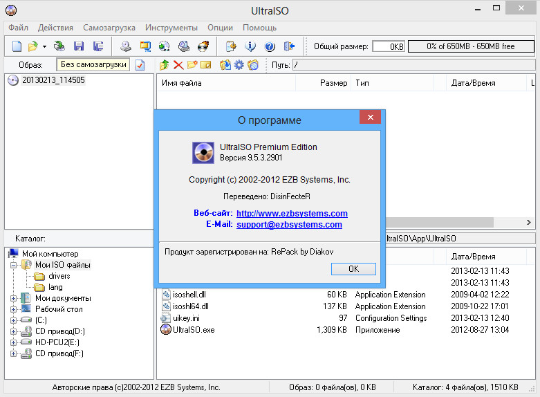 UltraISO Premium Edition 9.5.3.2901 RePack (& portable) by D!akov Русская/английская/украинская зарегистрированная и портативная версии в одном инсталляторе!