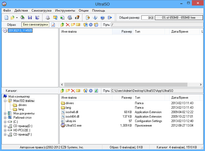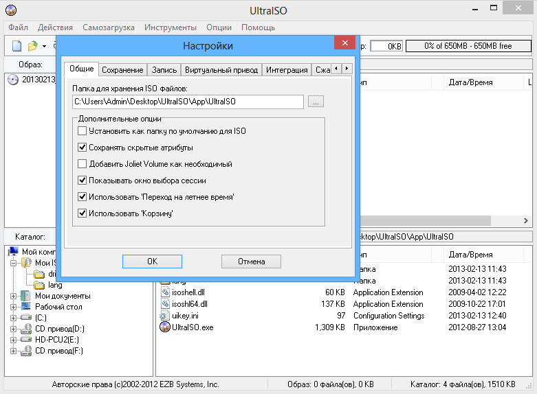 - Возможность добавлять , удалять, создавать новые папки, переименовывать файлы в файле образа