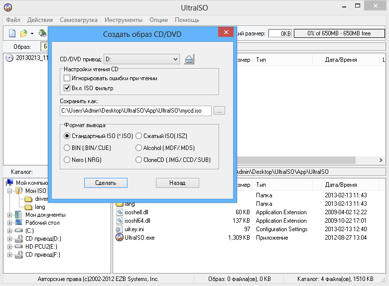 - Создание ISO-образа из любого документа с жесткого диска