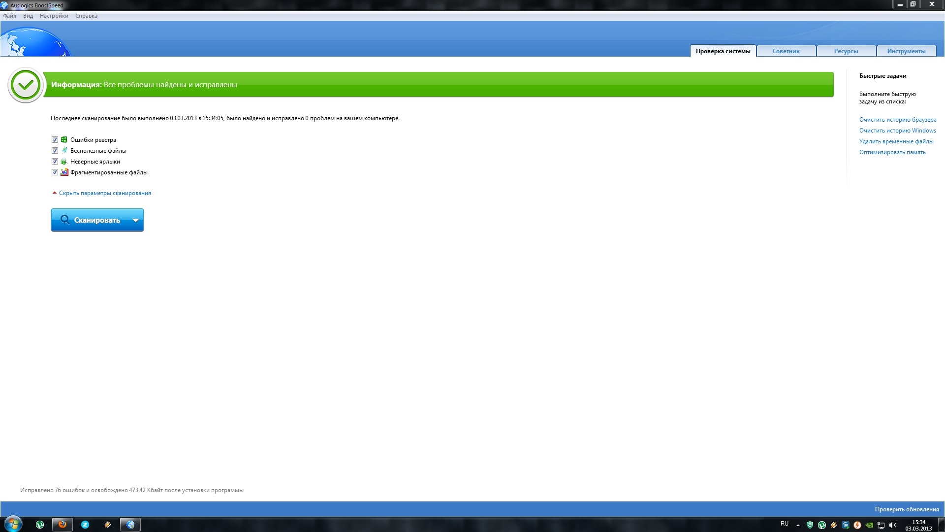 Функция очистки реестра а также папки Темп это отдельный разговор -лучше не пользоваться ими совсем ( переустановка ОС раз в полгода даст лучший эффект )