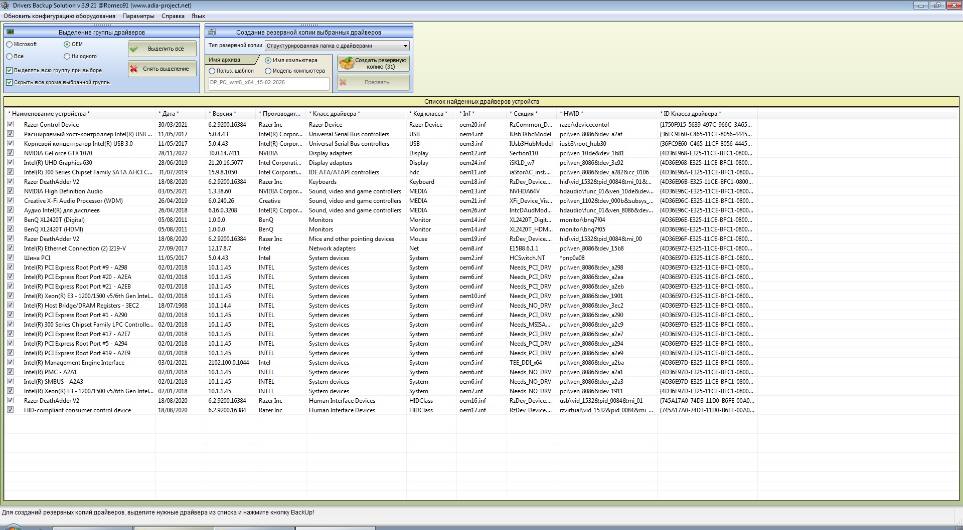 Версия программы: 26.2 Официальный сайт: Samlab.ws Driveroff.netЯзык интерфейса: Русский, Английский и другие Лечение: не требуется Системные требования: Поддержка 32/64-разрядных операционных систем Windows XP/Vista/7/8/8.1/10/11 Описание:Сборник драйверов от SamLab.ws, для всех 32-х и 64-битных операционных систем Windows, начиная от Windows 2000 и до Windows 11, включая серверные платформы. В качестве оболочек-установщиков, для автоопределения вашего оборудования и автоматической установки необходимых драйверов, использованы специализированные утилиты: DriverPack Solution 16.20 Plus / Drivers Installer Assistant 8.02.20 / Snappy Driver Installer 1.26.1 / DriverPack 17.10.14 / оболочка для бекапа драйверов Drivers Backup Solution 3.90.21. В сборник включены самые актуальные драйверы, на дату релиза, собранные лично SamLab. Не путать этот пакет с драйвер-паками от Bashrat'a - эти драйверы новее и стабильнее. SamLab, давно являясь членом команды Bashrat, имеет возможность, зная о всех проблемах аналогичных пакетов драйверов, создавать свой набор, наиболее полным и бесконфликтным! • Поддержка 32/64-разрядных операционных систем Windows XP/Vista/7/8/8.1/10/11 • Максимальный набор драйверов для ПК и ноутбуков на одном диске • Автоматическая установка в одно касание драйверов и программ • Экспресс-диагностика оборудования вашего компьютера/ноутбука • Резервное копирование установленных в системе драйверов • Дружелюбный и отзывчивый мультиязычный интерфейс • Возможность работы программы с любого носителя DP_Biometric_26022 DP_Camera_26020 DP_CardReader_26022 DP_Chipset_26022 DP_LAN_Intel_26020 DP_LAN_Others_26020 DP_LAN_Realtek-NT_26021 DP_LAN_Realtek-XP_26000 DP_MassStorage_26020 DP_Misc_26022 DP_Modem_26000 DP_Monitor_26022 DP_Printer_26000 DP_Sound_CMedia_26022 DP_Sound_Conexant_26022 DP_Sound_Creative_26022 DP_Sound_IDT_26000 DP_Sound_Intel_26022 DP_Sound_Others_26022 DP_Sound_Thesycon_26022 DP_Sound_VIA_26000 DP_Sound_Waves_26000 DP_Sounds_HDMI_26021 DP_Sounds_Realtek_26022 DP_Sounds_Realtek_DCH_26022 DP_Telephone_26000 DP_ThermoPrinter_26022 DP_Touchpad_Alps_26000 DP_Touchpad_Cypress_26000 DP_Touchpad_Elan_26022 DP_Touchpad_Others_26022 DP_Touchpad_Synaptics_26022 DP_TV_Aver_26000 DP_TV_Beholder_26000 DP_TV_DVB_26000 DP_TV_Others_26000 DP_Vendor_26022 DP_Video_Intel_DCH2xx_26000 DP_Video_Intel_DCH30x_26000 DP_Video_Intel_DCH31x_26000 DP_Video_Intel_DCH32x_26021 DP_Video_Intel-NT_26000 DP_Video_Intel-XP_26000 DP_Video_nVIDIA_DCH4x_26000 DP_Video_nVIDIA_DCH5x_26021 DP_Video_nVIDIA_Legacy-DCH_26021 DP_Video_nVIDIA_Legacy-NT_26000 DP_Video_nVIDIA_Server_26000 DP_Video_nVIDIA_Server_DCH_26000 DP_Video_nVIDIA-NT_26000 DP_Video_nVIDIA-XP_26000 DP_Videos_AMD_DCH30_26000 DP_Videos_AMD_DCH31_26020 DP_Videos_AMD_DCH32_26020 DP_Videos_AMD_Legacy-DCH_26000 DP_Videos_AMD_Legacy-NT_26022 DP_Videos_AMD_Server_26000 DP_Videos_AMD_Server_DCH_26020 DP_Videos_AMD-NT_26000 DP_Videos_AMD-XP_26000 DP_Videos_Others_26020 DP_wBluetooth_26022 DP_WebCam_26022 DP_WLAN-WiFi_26022 DP_WWAN-4G_26000 DP_xUSB_26022 DP_xVirtual_26022 DP_zAndroid_26021 DP_zLegal_26000 DP_zUSB3_26000 Системные ========= DirectX + CoDeC Pack + AOMEI Backupper + Flash Player + Shockwave Player - RuntimePack Библиотеки Windows + Microsoft Visual C++ .Net Framework - Silverlight - Java Runtime -