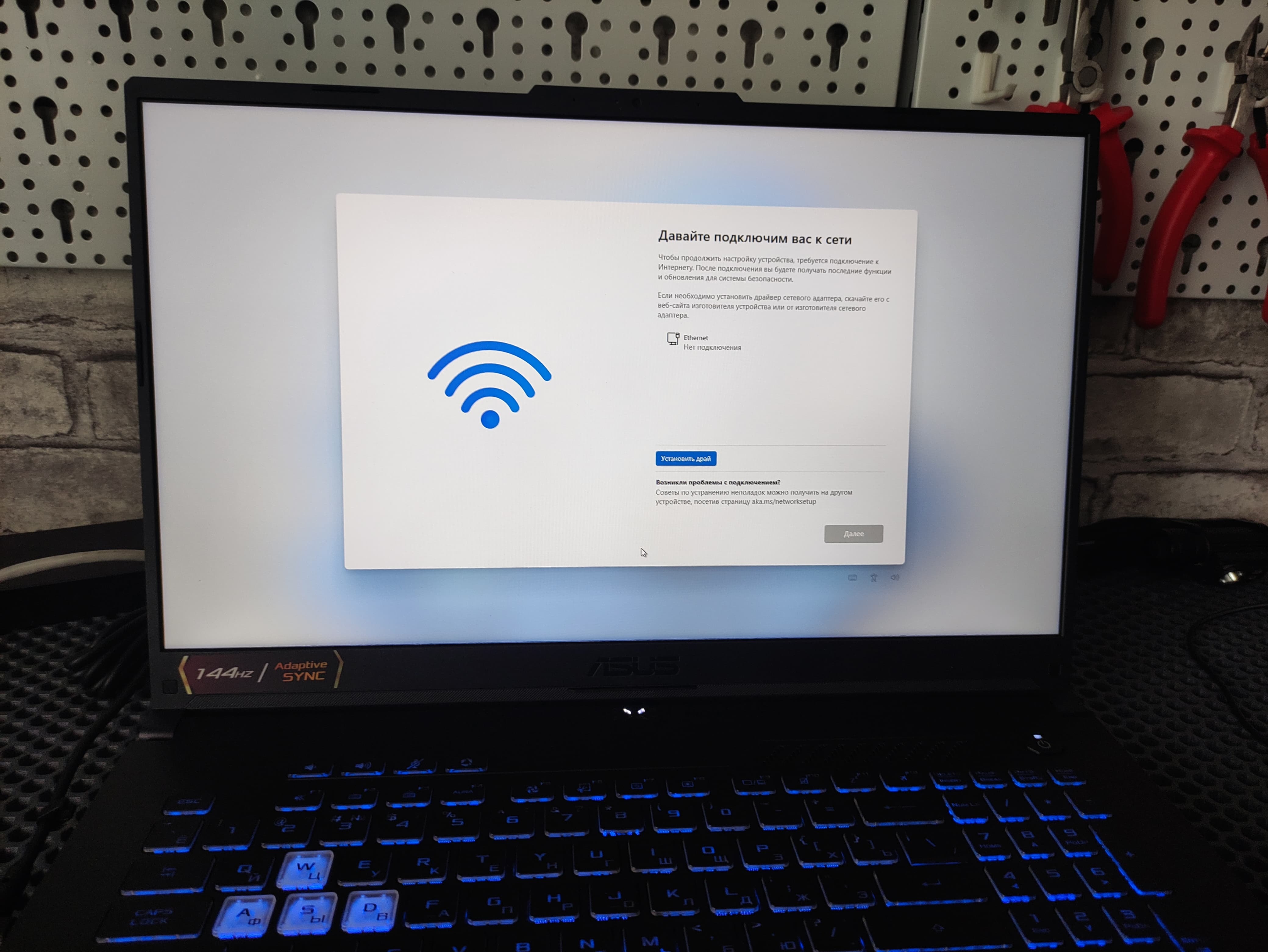 не подключаться к тырнету во время установки.