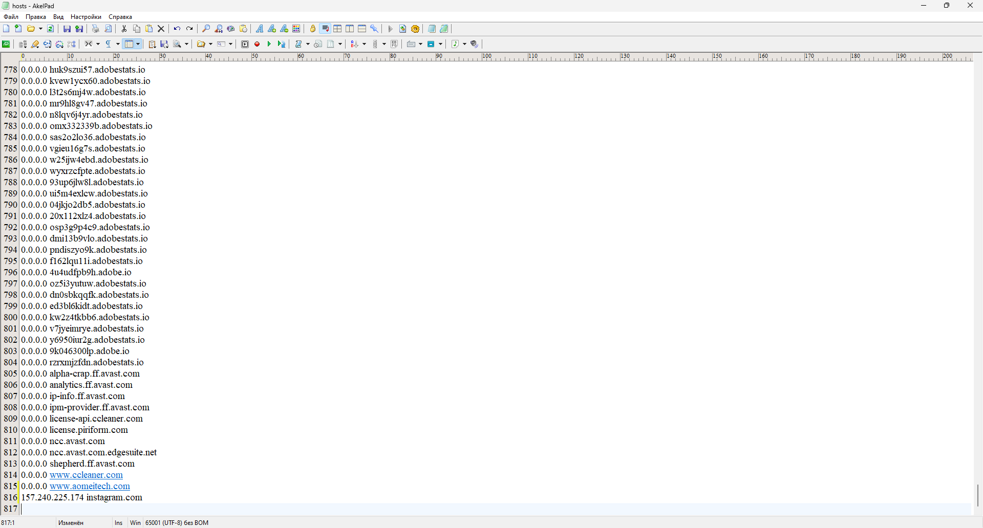 podlaserdance Привет. Разве hosts файл должен быть таким длинным 815 строк? У меня виндовс 11. На виндовс 7 он 23 строки занимал.