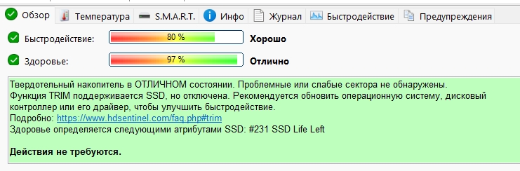 В других менее модернизированных версиях TRIM работает Драйвера актуальны, винда ничего не предлагает сделать.  |