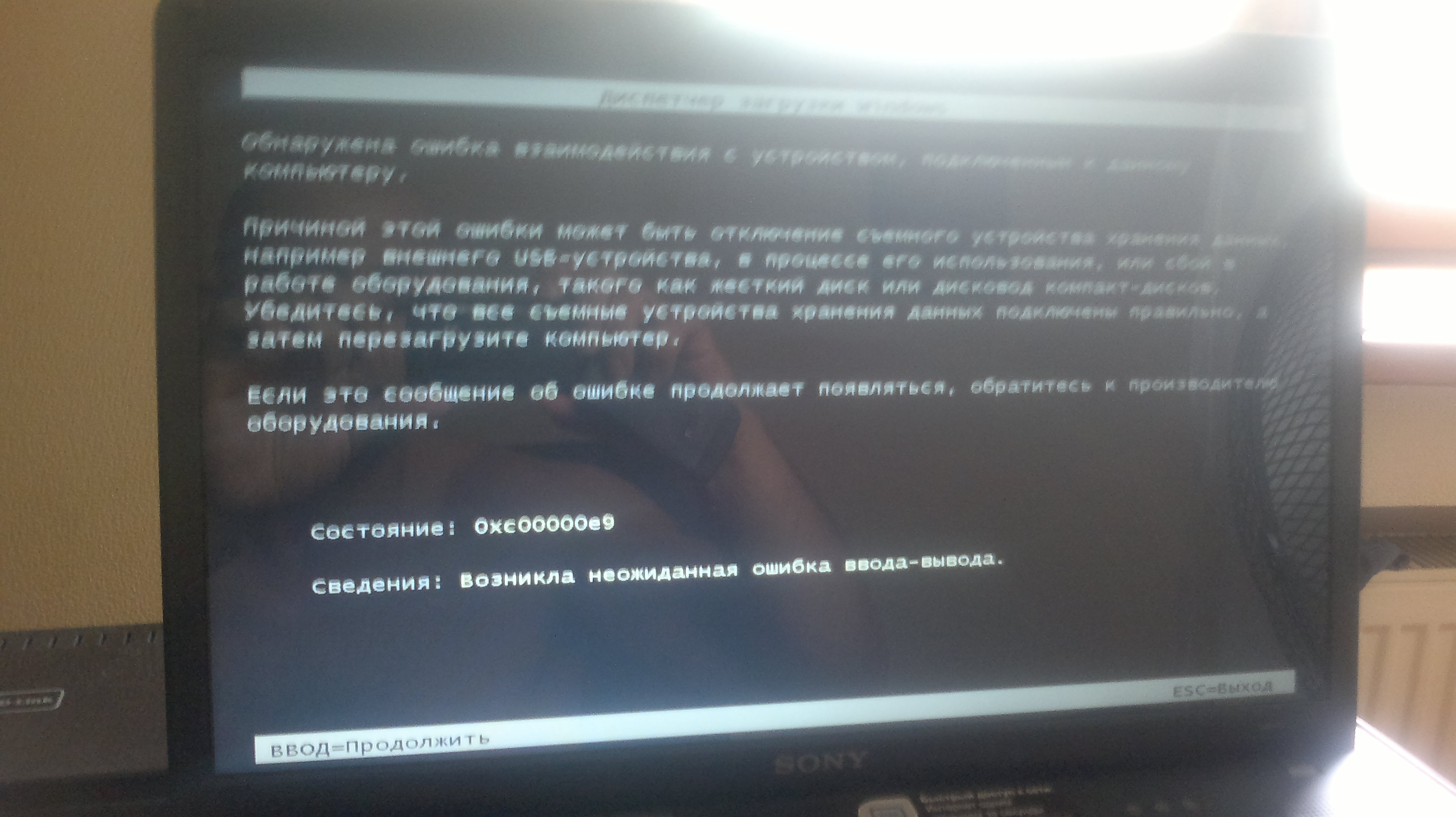 FILTH2012 добрый день помагите пожалуйста проблема! ноутбук СОСТОЯНИЕ:0хс00000е9 что делать не знаю wind не грузится!!! СПАСИБО |