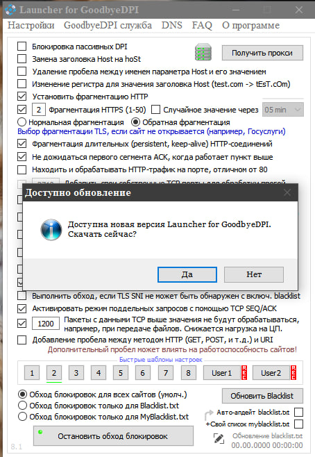 GoodbyeDPI 0.2.3rc1 Launcher 8.1 [Ru/En]