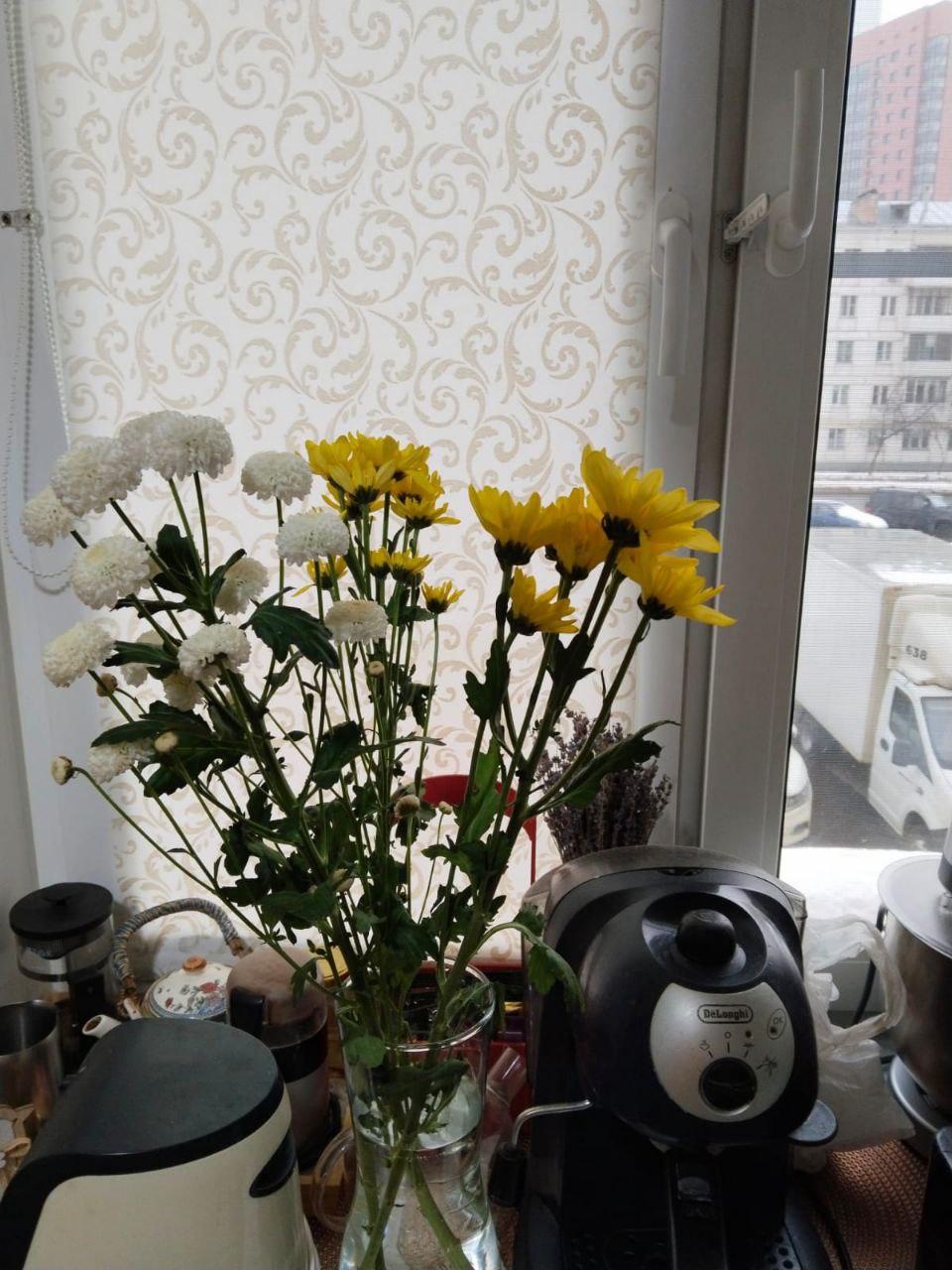 Букет в стеклянной вазе увядал,
