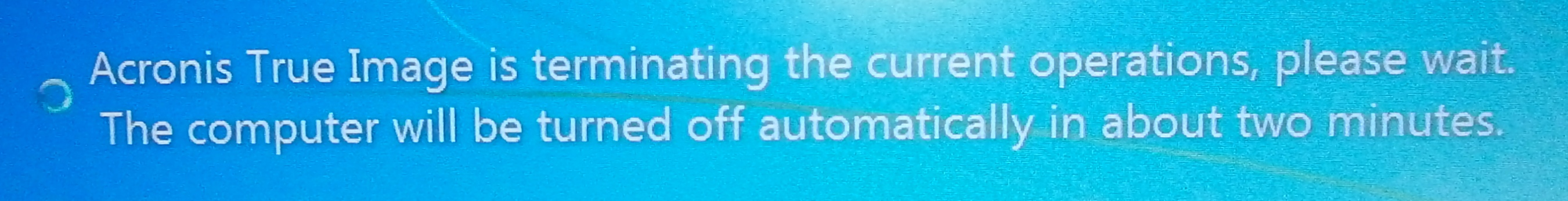 Acronis True Image is terminating the current operations, please wait. The computer will be turned off automatically in about two minutes.