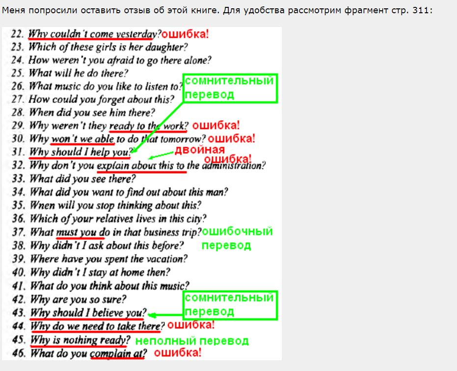 А Дружбинский для своих книг черным негром взял какую то студентку, которая и наделала в переводе много ошибок. Так он оправдывается. Во втором издании ошибки чернорабочей исправлены. Однако ошибки корявого английского так и не убраны. Вопрос - а была ли студентка?  |