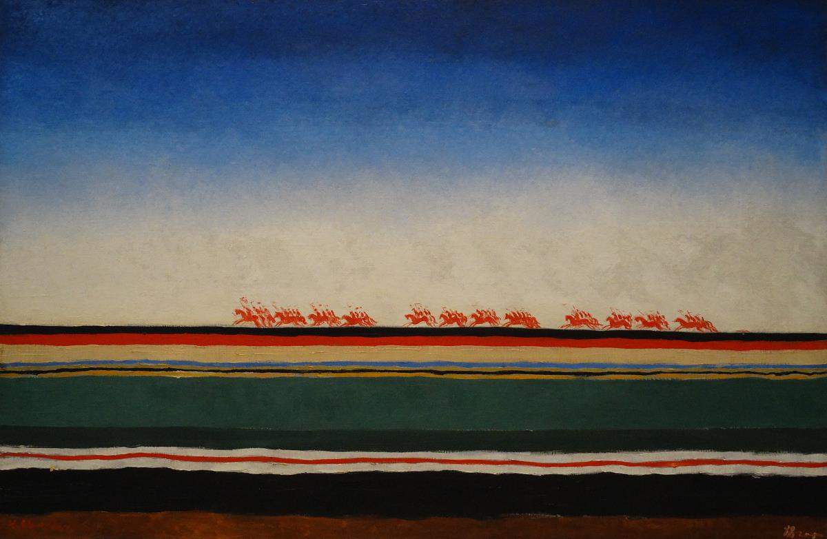 В чем показушность комиссарства Малевича? В том что он действительно занимал пост комиссара и в том что он был главным официальным лицом нового пролетарского искусства? И благодаря этому показушному комиссарству его квадрат постоянно проживал в выставочных залах европейских выставок? Давайте прямо: если человек недолюбливает власть, то он не будет никоим образом к ней причастен. Если он человек, а не ****. Galaxpro писал(а):  | в свою картину - "Скачет красная конница"... он вложил иной смысл, но комиссары конечно же нифига не поняли;