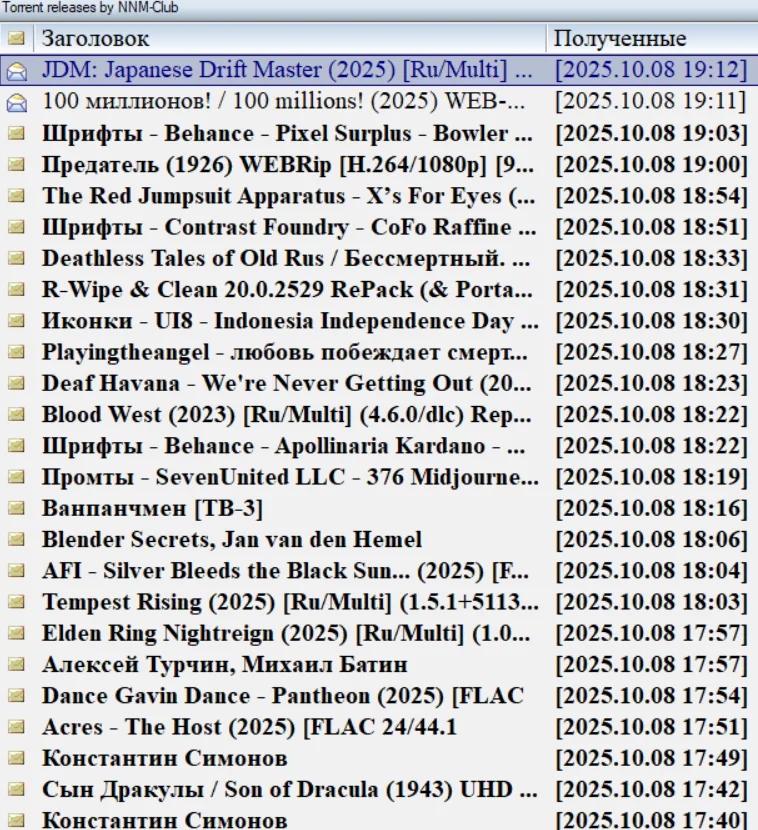 Основная лента для закачек: http://nnmclub.to/forum/rssd.xml - это все новые релизы за последние 8 часов.