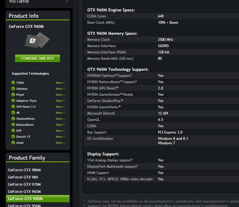 Всем доброго дня. Такой вопрос. Неоднократно слышал, что видеокарты "равной" серии для ноутбука (помечаемые литерой "М") выходят с "урезанными" возможностями в сравнении с компьютерным "оригиналом". Например, есть видеокарта GTX960 и GTX960M. То есть, подразумевается одна серия (год издания, в моем понимании), превосходящая предыдущую аналогичную серию (например, GTX860 и GTX860M), но ноутбучная в чем-то уступает, во-первых, своей "ровеснице" GTX960, а во-вторых, своей компьютерной предшественнице (например, GTX860). В чем она уступает? Сильно ли она уступает? Есть ли где таблицы, чтобы посмотреть, оценить степень "урона" для ноута?