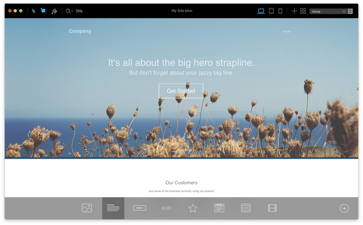 Кодирование без программирования - Вам не нужно понимать или использовать кодирование для создания веб-сайта с блоками. Blocs собран с помощью Bootstrap 3, одним из самых надежных и проверенных инструментов для построения сайтов. Blocs поставляется с большим количеством готовых макетов, поэтому создавать сайты предельно просто и быстро.