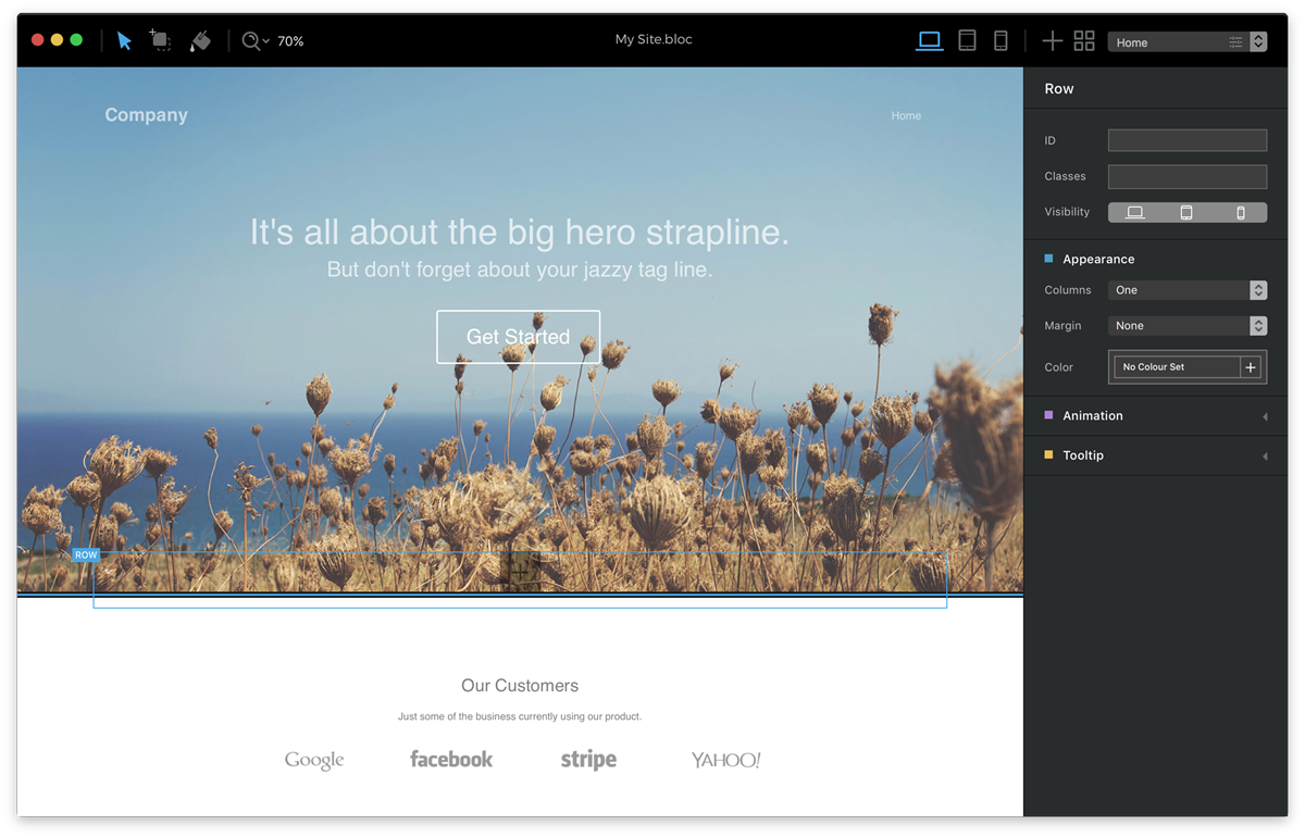 Blocs избавляет от необходимости написания кода вручную, что означает — каждый может создавать веб-сайты. Blocs генерирует хорошее качество кода без лишних или встроенных стилей. Blocs обеспечивает новый уровень работы и помогает Вам сосредоточиться на визуальном создании веб-сайтов.