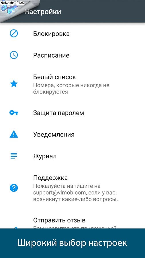 Кроме того, вы можете легко управлять настройками приложения, такими как, например, блокировка скрытых номеров или отключение уведомлений.