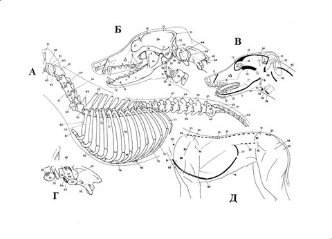 Так как многим читателям, несомненно, никогда не придется увидеть, что внутри у собаки, основное внимание уделено тем анатомическим структурам, которые можно увидеть или прощупать через кожу. Следовательно, поверхностные изображения составляют важный компонент многих рисунков. Ряд других рисунков показывает положение внутренних структур относительно поверхности тела. Позиция и взаимное расположение разнообразных внутренних компонентов сердечно-сосудистой, пищеварительной, дыхательной и мочеполовой систем показаны в виде проекций на поверхность.