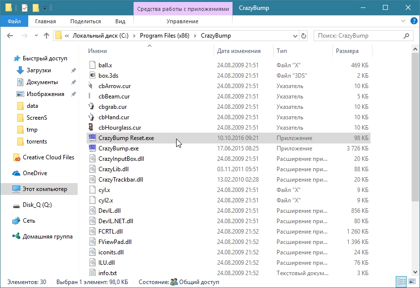 на всех машинах, на которых проверял. А в задачах висеть должен только "CrazyBump.exe". "CrazyBump Reset.exe" удаляет данные о триале из реестра и запускает "CrazyBump.exe". |