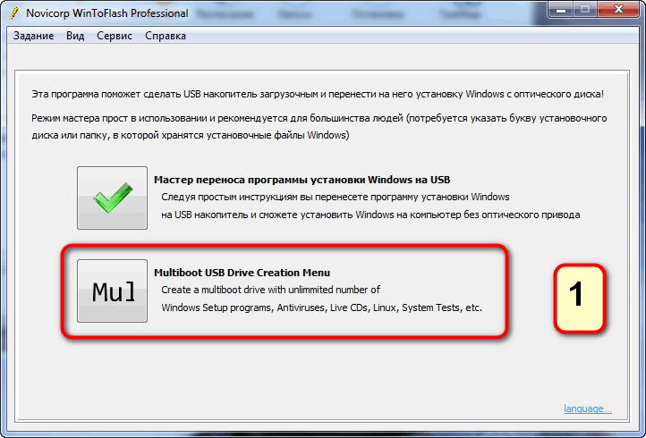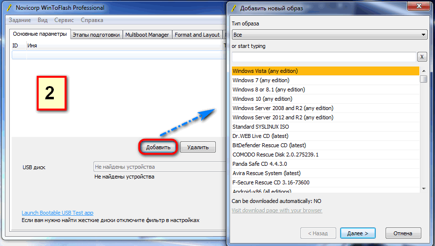 Описание:Novicorp WinToFlash – знаменитое приложение для создания мультизагрузочных USB флэшек и жестких дисков через удобное меню с неограниченным количеством установок Windows, оффлайн антивирусов, LiveDVD, реаниматоров и других мини-ос или тестов. Программа может самостоятельно скачать из интернета образы выбранных вами дисков и создать кэш этих образов на вашем компьютере, чтобы не тратить время на скачивание их каждый раз заново. Все операции с USB флэшкой, такие как разметка, форматирование, проверка chkdsk, программа производит полностью самостоятельно. Для проблемных BIOSов на дешевых компьютерах имеются детальные настройки процесса создания мультизагрузочной флэшки для возможности их ручной настройки пользователем и более простые (потому имеющие большую совместимость) варианты создания простых монобутовых USB флэшек. Программа может также создать побайтовый образ вашей флэшки и записать его, или любой другой, например, OpenWRT или другой линукс, распространяемый в img образах, на флэшку или очистить все данные на флэшке на уровне блочного устройства, что удалит как данные, так и структуры файловых систем, так и заполнив нулями свободное место, которое недоступно при обычном использовании флэшки. - Вам нужно создать установочную USB флэшку из многих ISOs образов (Windows, Linux, и т.д.) в одной