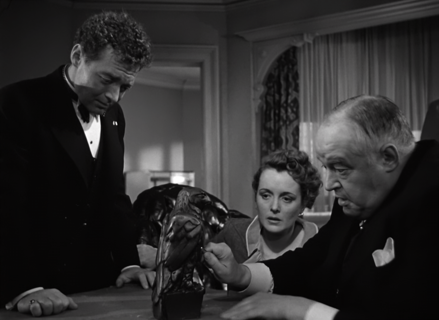 Режиссер: Джон Хьюстон Продюсер: Джон Хьюстон, Дэшил Хэммет Актеры: Хамфри Богарт, Мэри Астор, Глэдис Джордж, Петер Лорре, Бартон МакЛэйн, Ли Патрик, Сидни Гринстрит, Уорд Бонд, Джером Кауэн, Элиша Кук мл.