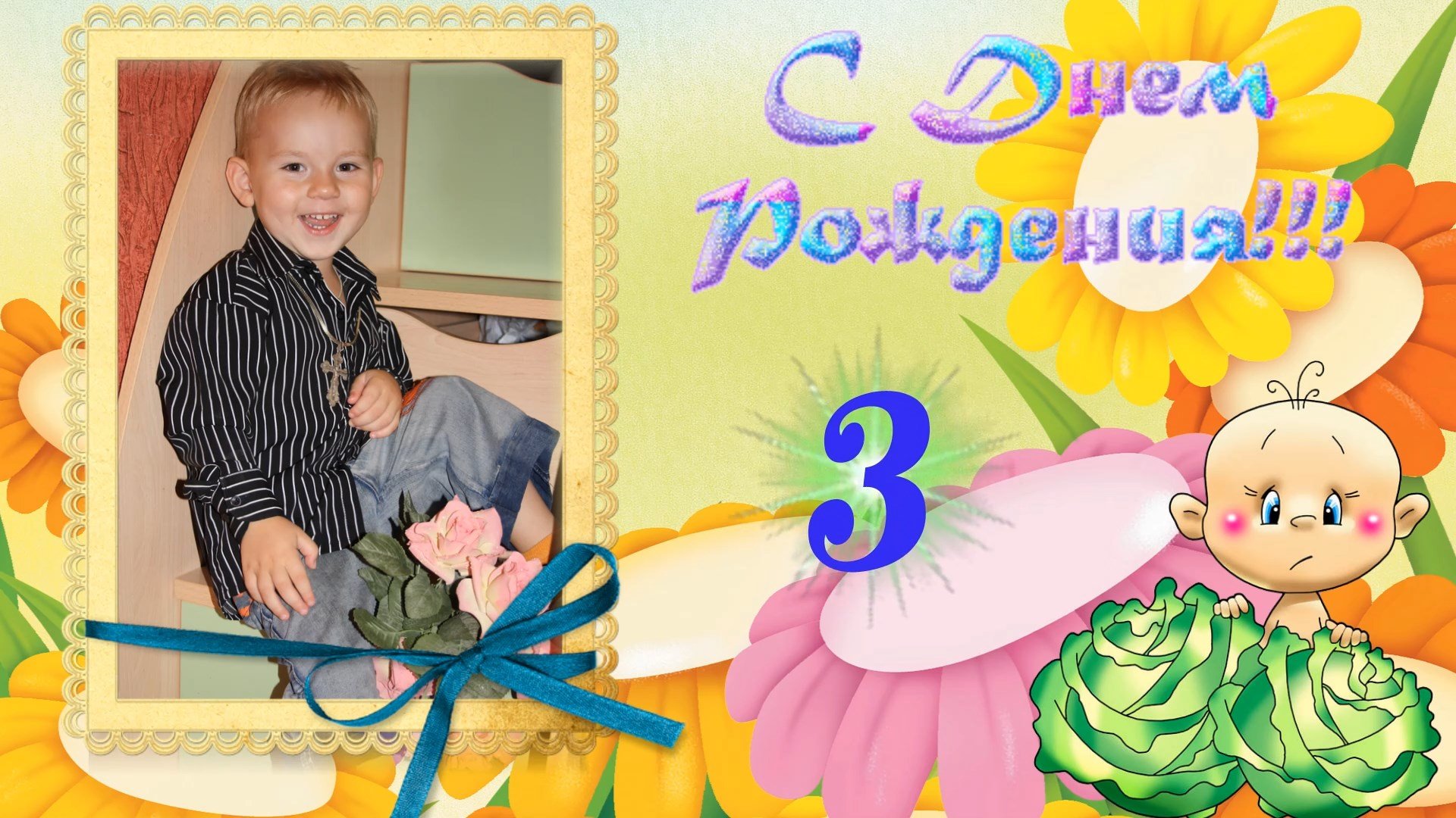 Описание:Детский проект, поздравление ребенку на 3-летие (можно, естественно, поменять на любую свою цифру, в пределах разумного).