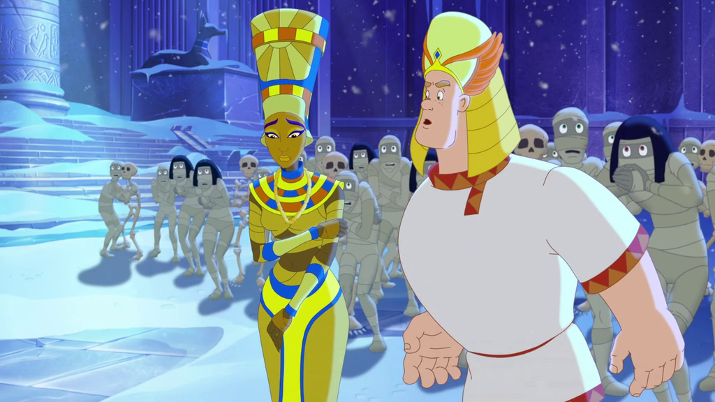 Описание: В новогоднюю ночь, в то время, как Князь готовится произнести торжественную речь, а Юлий распаковывает подарки и следит за приготовлением праздничного стола, богатыри едут в гости к Алёше и встречают там странного товарища по имени Дурило. Оказывается, это тринадцатый месяц, который никому особенно не нужен, и который пытается осуществить своё заветное желание — стать самым главным месяцем в году. Только и надо ему, что притвориться Дедом Морозом, показать доверчивому Алёше пару фокусов, подружиться с богатырями и оказаться в Египте — стране фараонов и древних пирамид. А дальше — пирамиды, заклинание, Древний огонь — и дело в шляпе! Но не так-то просто осуществить своё коварное желание, когда на пути у тебя встают не только три богатыря, но и их жёны, Князь и Юлий, Змей Горыныч и Дед Мороз и даже — сама принцесса Нефертити!