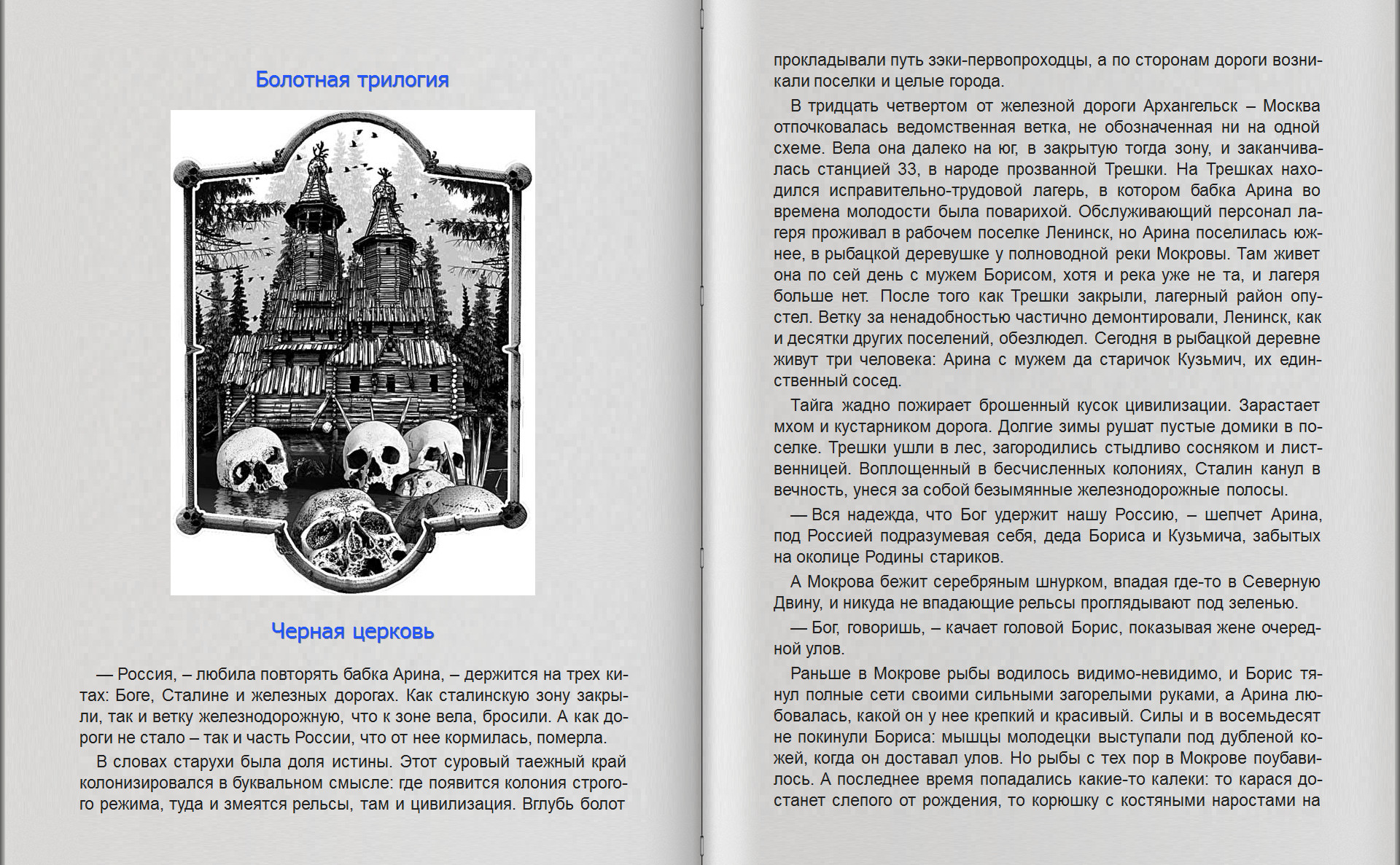 Автор: Максим Кабир Серия: Самая страшная книга ISBN: 978-5-17-114788-4 Жaнр: Триллер, Ужасы Иллюстрации: Черно-белые Аннотация:Сборник малой прозы.Максим Кабир – писатель, поэт, анархист. Беззаветный фанат жанра ужасов и мистики. Лауреат премий «Рукопись года» и «Мастера ужасов». Добро пожаловать в мир призраков Максима Кабира! Здесь пропавшая много лет назад девочка присылает брату письмо с предложением поиграть. Здесь по улицам блокадного Ленинграда бродит жуткий Африкан. Здесь самый обыкновенный татуировщик и самый обыкновенный сосед по больничной палате оказываются не теми, за кого себя выдают. И зловещая черная церковь звенит колоколами посреди болота в глубине тайги. Добро пожаловать в мир призраков Максима Кабира! Болотная трилогия (цикл) • Максим Кабир. Чёрная Церковь (рассказ) • Максим Кабир. Дом на болоте (рассказ) • Максим Кабир. Малые боги (рассказ) Максим Кабир. Роженицы (рассказ) Максим Кабир. Слухи (рассказ) Максим Кабир. Жуки (рассказ) Максим Кабир. Ночь без сияния (рассказ) Максим Кабир. За пределами Котьей страны (рассказ) Максим Кабир. Призраки (рассказ) Максим Кабир. Багровая луна (рассказ) Максим Кабир. Бабочки в её глазах (рассказ) Максим Кабир. Упырь (рассказ) Максим Кабир. Поющие в глубинах (рассказ) Максим Кабир. Пепел (рассказ) Максим Кабир. Африкан (рассказ) Максим Кабир. Черви (рассказ) Максим Кабир. Дева (рассказ) Максим Кабир. Перевёртыш (рассказ) Максим Кабир. Классные рога, чувак! (рассказ) Максим Кабир. Грех (рассказ) Максим Кабир. Самый особенный дождь (рассказ) Максим Кабир. Свято место (рассказ) Максим Кабир. Паутина (рассказ) Максим Кабир. Палата (рассказ) Максим Кабир. Морок (повесть) Максим Кабир. Послесловие (статья) Максим Кабир | Скелеты (2018) [FB2]