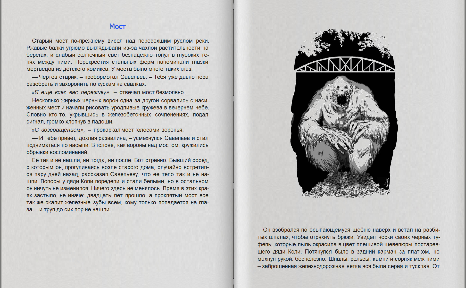 Автор: Олег Кожин Серия: Самая страшная книга ISBN: 978-5-17-127235-7 Жaнр: Мистика, Ужасы Иллюстрации: Без иллюстраций Аннотация:Сборник избранной малой прозы.У каждого свои страхи, потаенные и не очень. Кто-то боится пауков, а кто-то – тварей, чьи глаза никогда не видели солнца. Кого-то бросает в дрожь от мысли про маньяка, прячущегося за шторкой в ванной комнате, а кого-то больше беспокоят острые края бумажных листов. Одних ввергают в ужас длинные клыки и острые когти, а другим достаточно услышать скрип половицы… За спиной. В темном заброшенном доме. У каждого свои страхи. В «Зверинце» Олега Кожина собраны самые невероятные кошмары. Вот они – рычат, скалят зубы. Мерцают желтые глаза во тьме за решеткой. Готовы ли вы рискнуть и открыть клетку?.. Олег Кожин. Зверинец (рассказ) Олег Кожин. Иней на лицах (рассказ) Олег Кожин. Ледник (рассказ) Олег Кожин. Вериярви (рассказ) Олег Кожин. Сучёныш (рассказ) Олег Кожин. Узкая колея нашего детства (рассказ) Олег Кожин. Человек-крот (рассказ) Олег Кожин. Сетевой (рассказ) Олег Кожин. Граффити (рассказ) Олег Кожин. Вольк (рассказ) Олег Кожин. Родительский день (рассказ) Олег Кожин. Момент истины (рассказ) Олег Кожин. Всё и даже больше (рассказ) Олег Кожин. Памятка юного бродяжки (рассказ) Олег Кожин. Лисья осень (рассказ) Олег Кожин. Гуси-лебеди (рассказ) Олег Кожин | Рассвет (2018) [FB2]