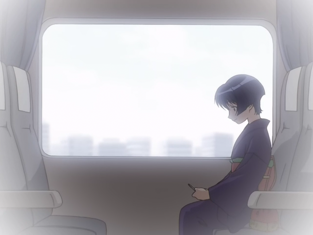Возвращаясь домой из университета, он увидел красивую девушку в синем кимоно, которая выглядела очень одинокой и растерянной. У неё порвалась ханао, тесёмка на традиционных японских сандалиях, и Каору, с детства умеющий чинить сандалии, помог девушке. Выяснив, что она едет в ту же сторону, что и он, Каору вызвался проводить её до места назначения. Во время поездки девушка рассказала, что едет к своему жениху, человеку необычайных душевных качеств, которого она давно не видела. Однако адрес, который был записан на клочке бумаги, привёл их к незастроенному участку с давно сгоревшим домом. Каору предложил незнакомке, переждать начавшийся дождь в его доме по соседству.