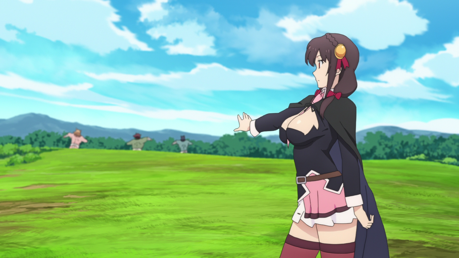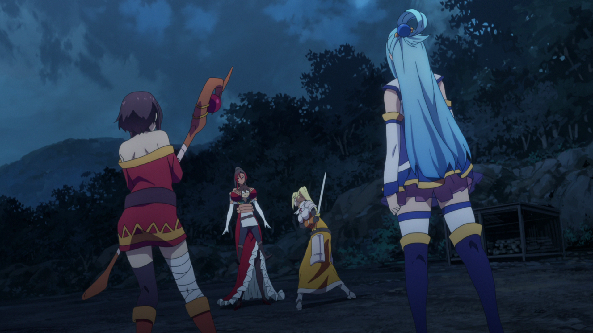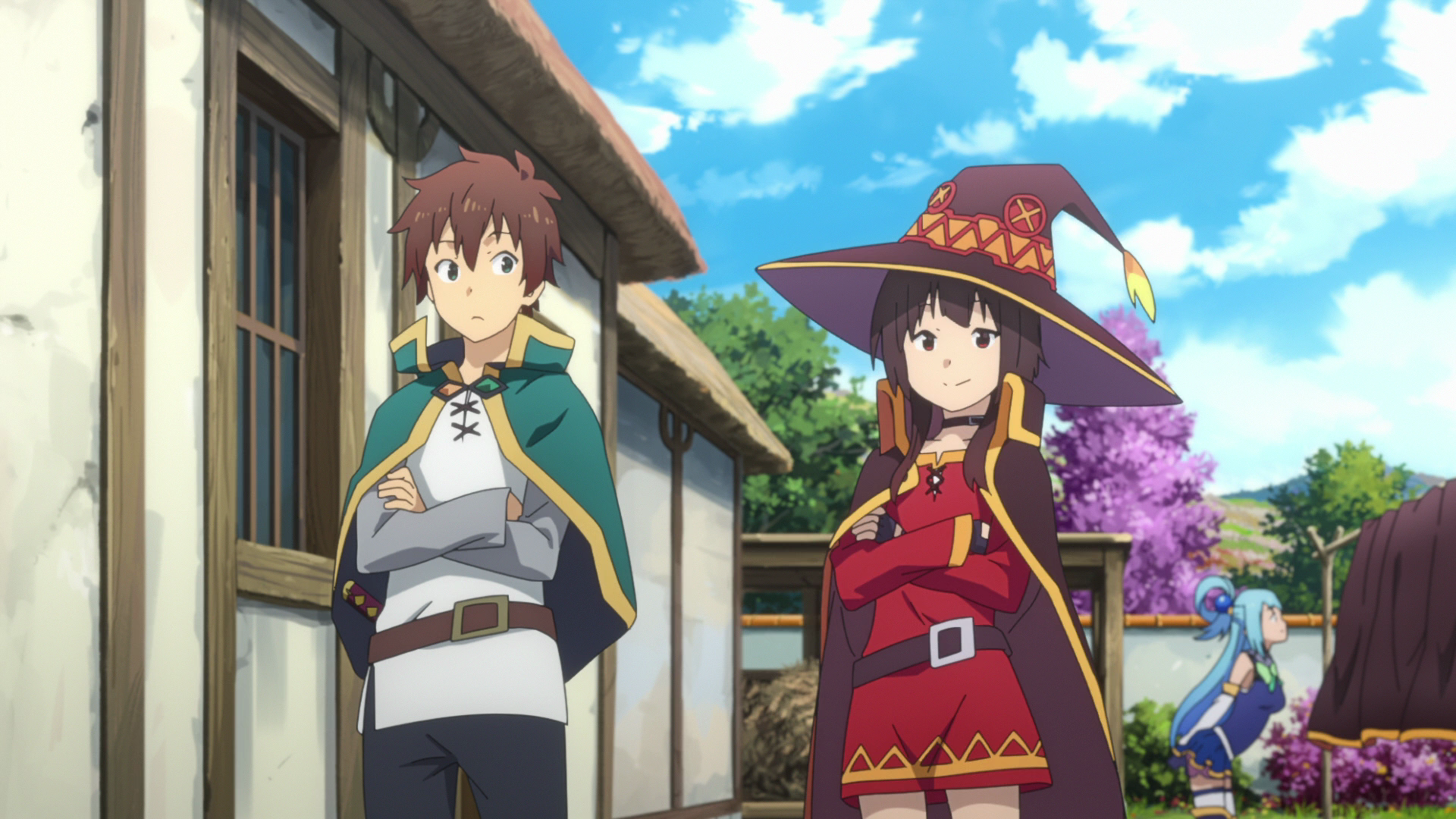 приключения Казумы и компании в деревне алых магов, родственников Мегумин.