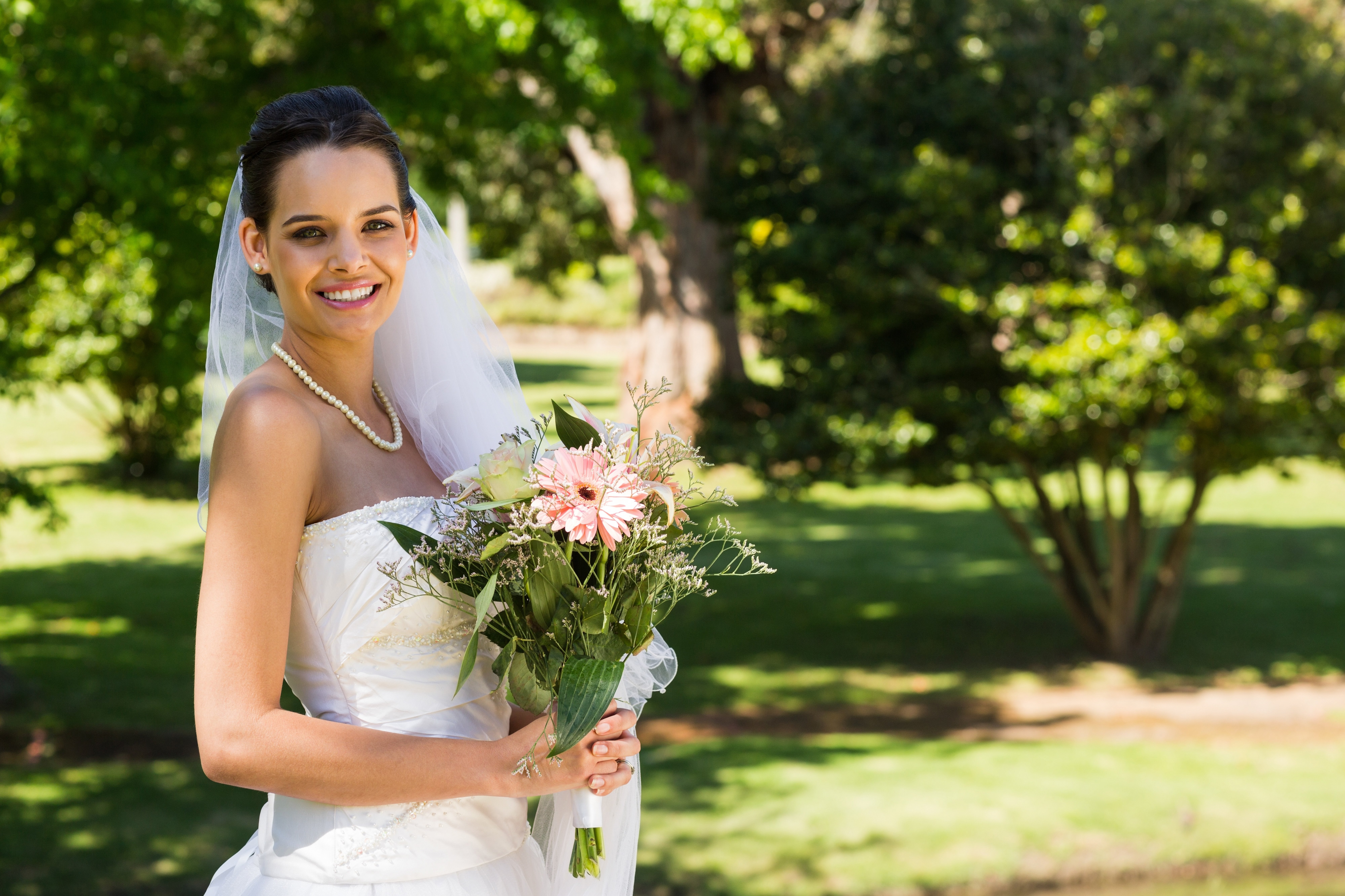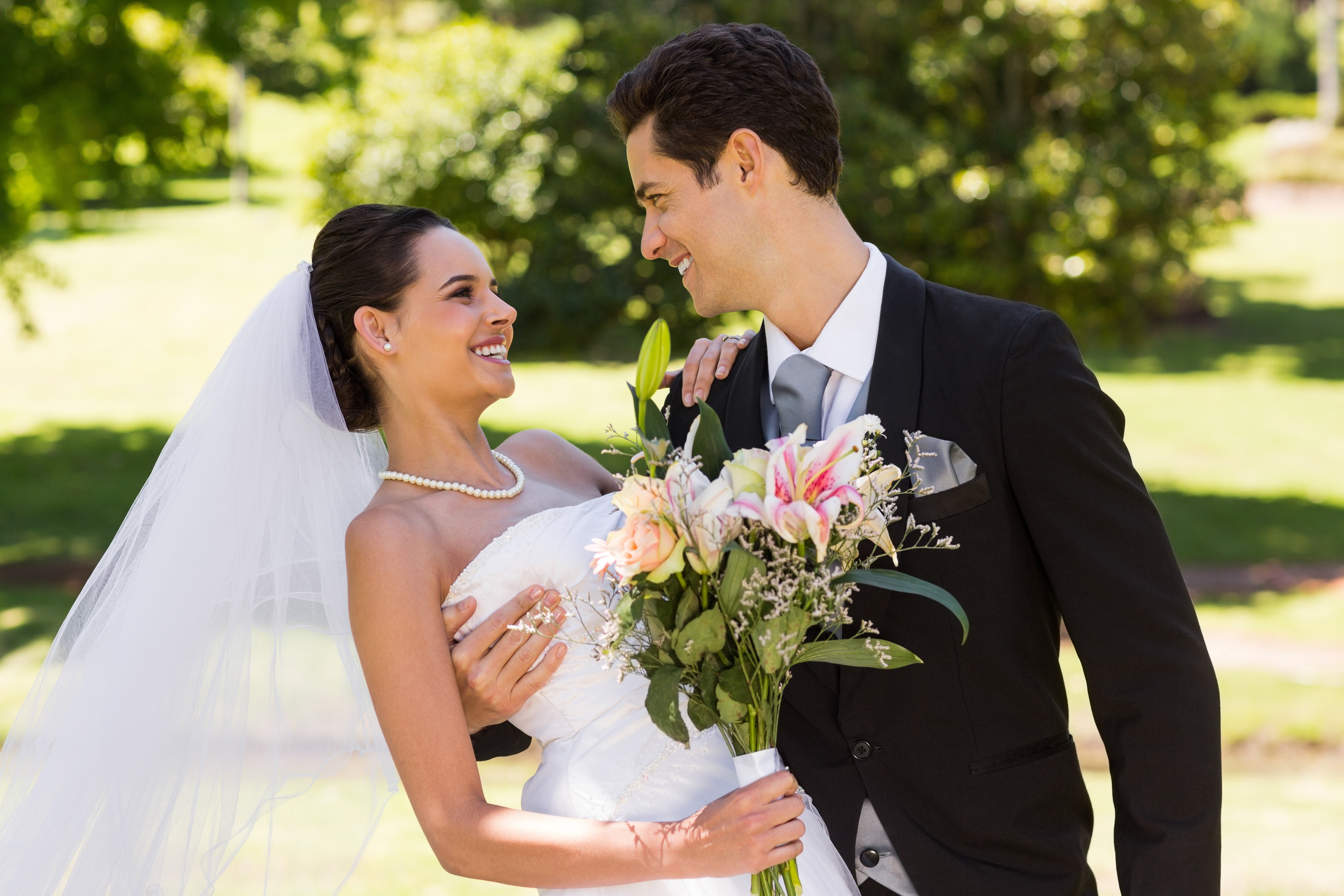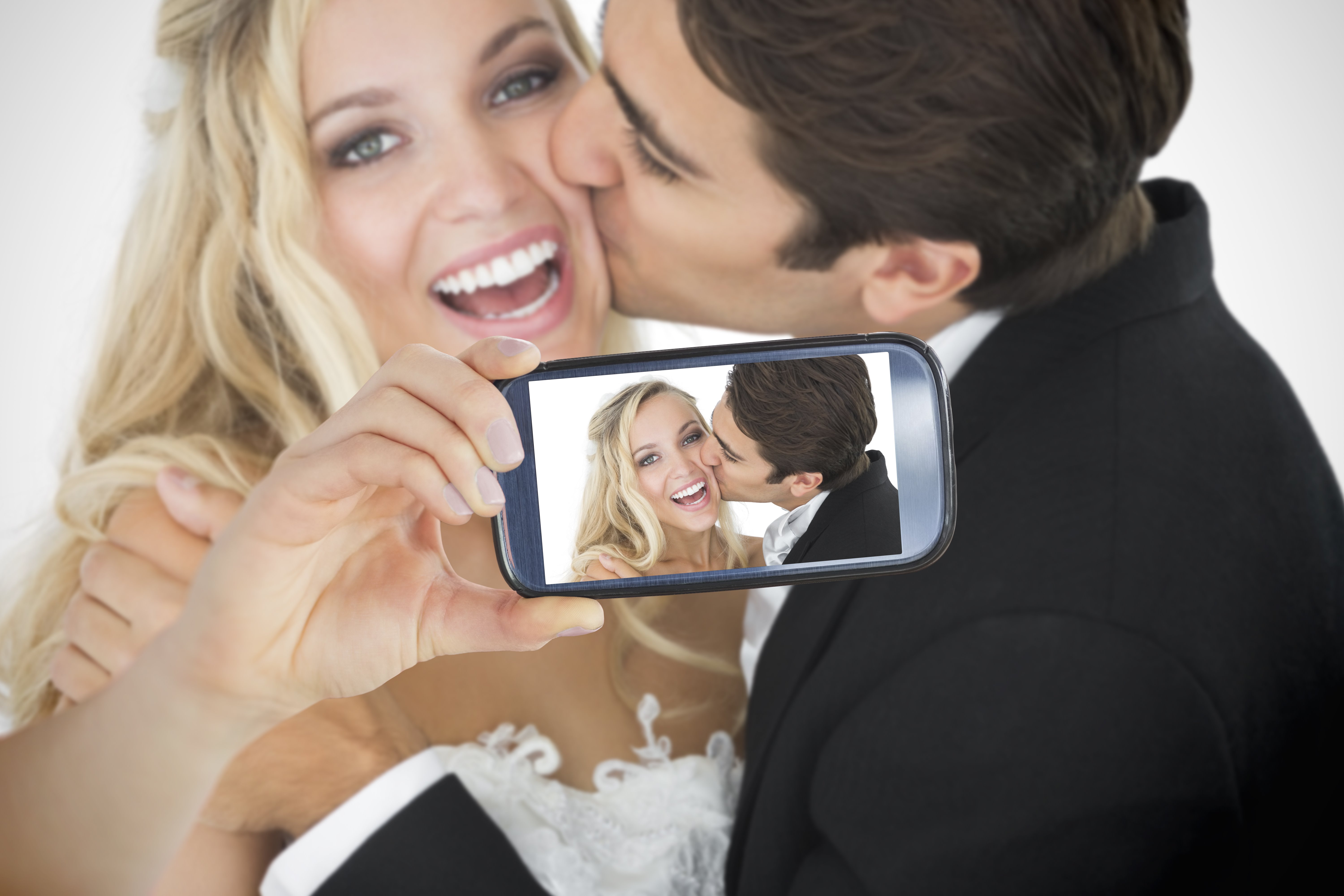 Happy bride and groom, marriage stock photo
