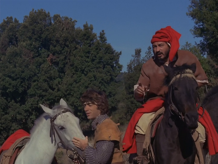 Описание: Жители страдающей от засухи деревни решают отправить посла к епископу Вольтерра с просьбой поспособствовать в строительстве оросительного канала. Посланником становится Гульфардо де Барди, в доме которого, как раз в этот момент гостил авантюрист и проходимец Фолькаккио, выдающий себя за странствующего инкогнито аристократа. Напросившись сопровождать Гульфардо к епископу, Фолькаккио становится неиссякающим источником проблем, из которых сам же постоянно находит оригинальный выход. Для начала он обещает научить наивного крестьянина, встретившегося посланцам по пути, превращать его жену в лошадь и обратно. Но эта невинная шутка едва не выходит приятелям боком, когда их принимают за опасных колдунов и пытаются отправить на костер…
