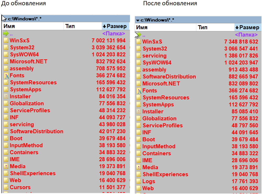 ИМХО Сборки лучше не обновлять. Ибо прилетит много и непонятно что, и как будет себя вести. В общем можно испортить весь авторский замысел. Для обновления лучше ставить новую сборку. Для примера обновление текущей сборки: папка Windows было 13,9 Гб, стало 16,9 Гб.