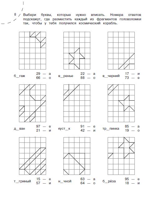 Эта книга поможет организовать полезный досуг школьника без участия взрослого. Решив примеры, ребёнок сам проверяет правильность решения с помощью переноса фрагментов рисунка на большое поле. При правильном решении получается красивый рисунок. В процессе работы над заданиями и восстановлением рисунка задействуются и развиваются разнообразные ментальные и моторные навыки. Гармонизируется развитие обоих полушарий головного мозга. Работая с этим тренажером ребёнок привыкает самостоятельно организовывать свой досуг и развиваться.