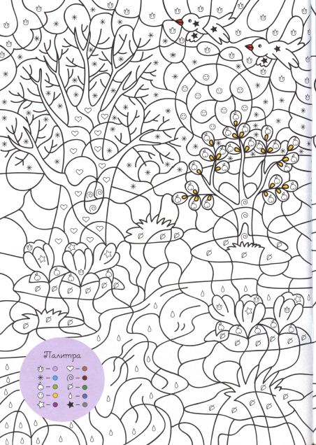 Описание:Более 30 волшебных сюжетов для раскрашивания по цветам, символам и номерам.