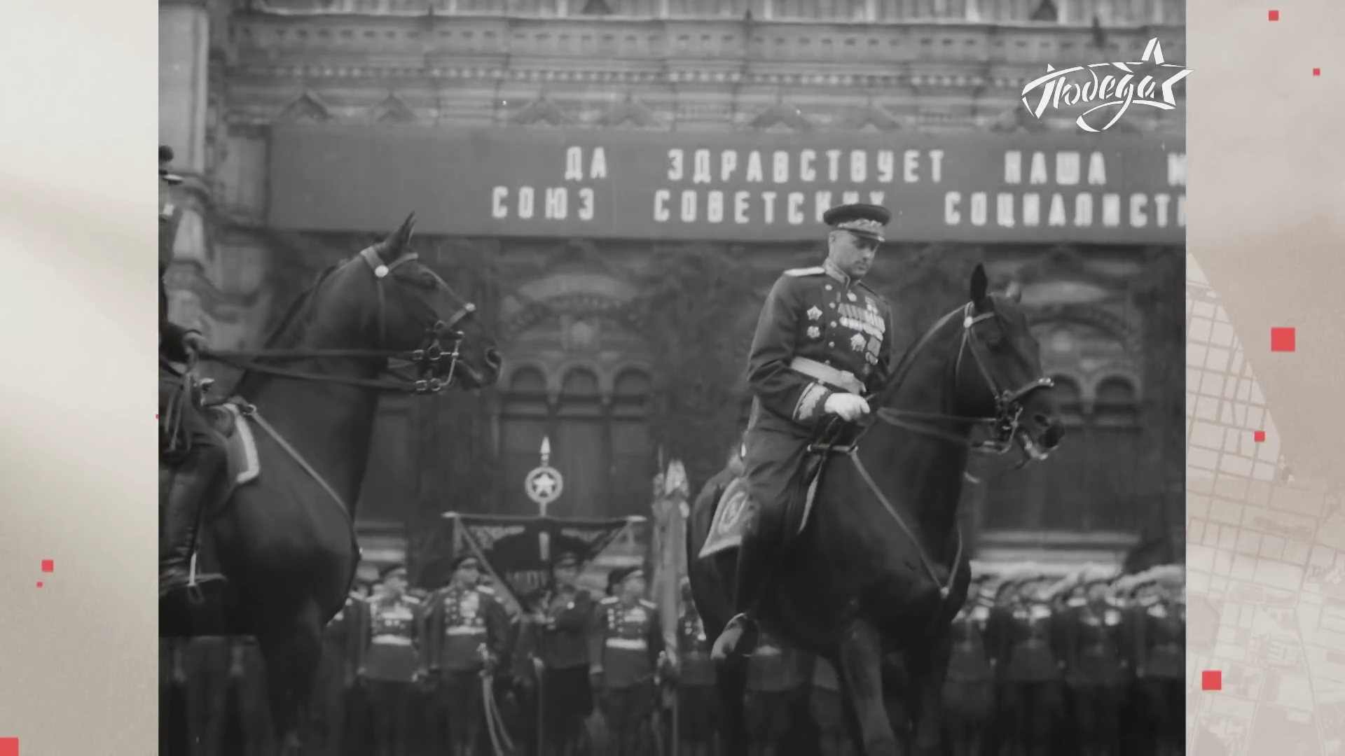 Благодаря экспертам и историкам музыки, звучат именно те военные марши и та музыка, которая действительно звучала в тот день. Исторические архивные кадры и музыкальное сопровождение бережно восстановлены и отреставрированы вручную телеканалом «ПОБЕДА».