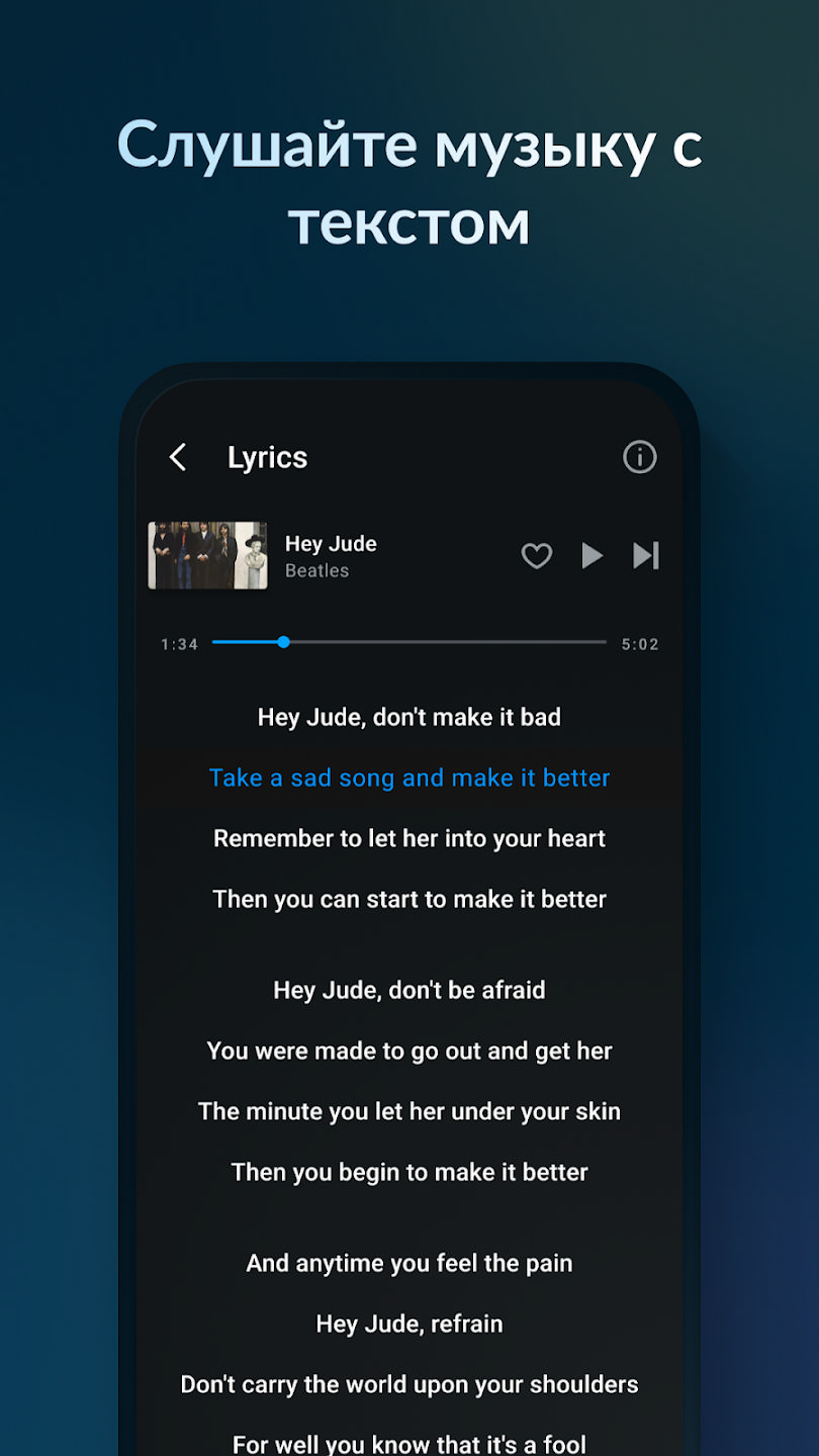 Текст прокручивается синхронно с музыкой, чтобы вы могли подпевать любимым песням и не упустили ни строчки.