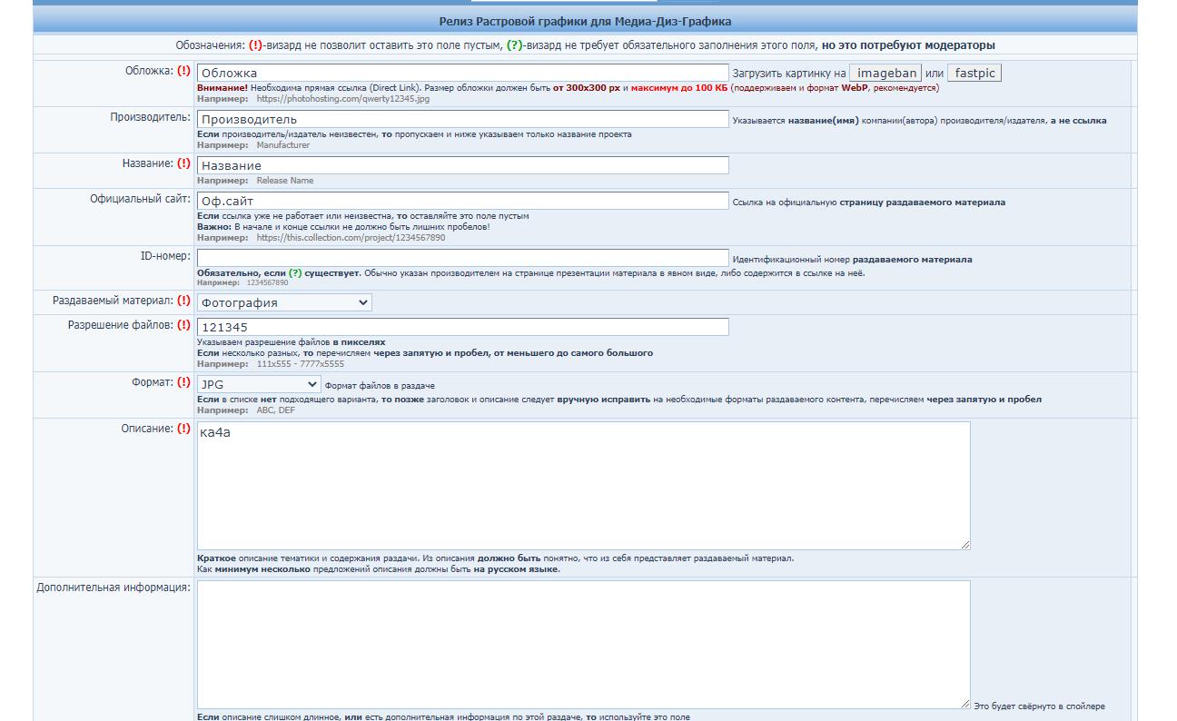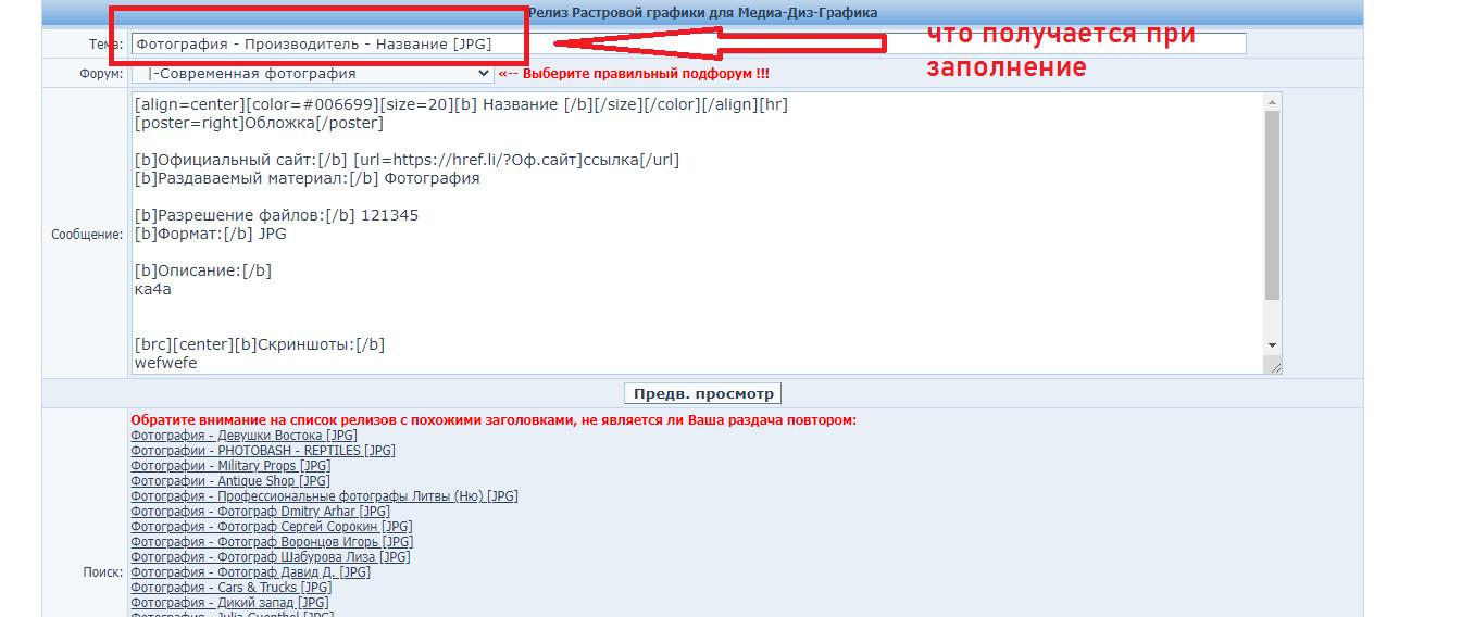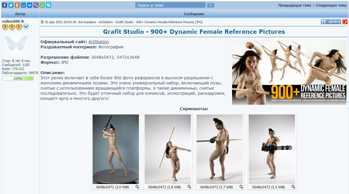 Teno27Название раздачи должно (после заполнения релиз-визарда) выглядеть так Фотография - ArtStation - Grafit studio - 730+ Versatile Female Character Reference Pictures [JPG]Само описание (после правильного заполнения релиз-визарда) должно получиться таким. 730+ Versatile Female Character Reference Pictures