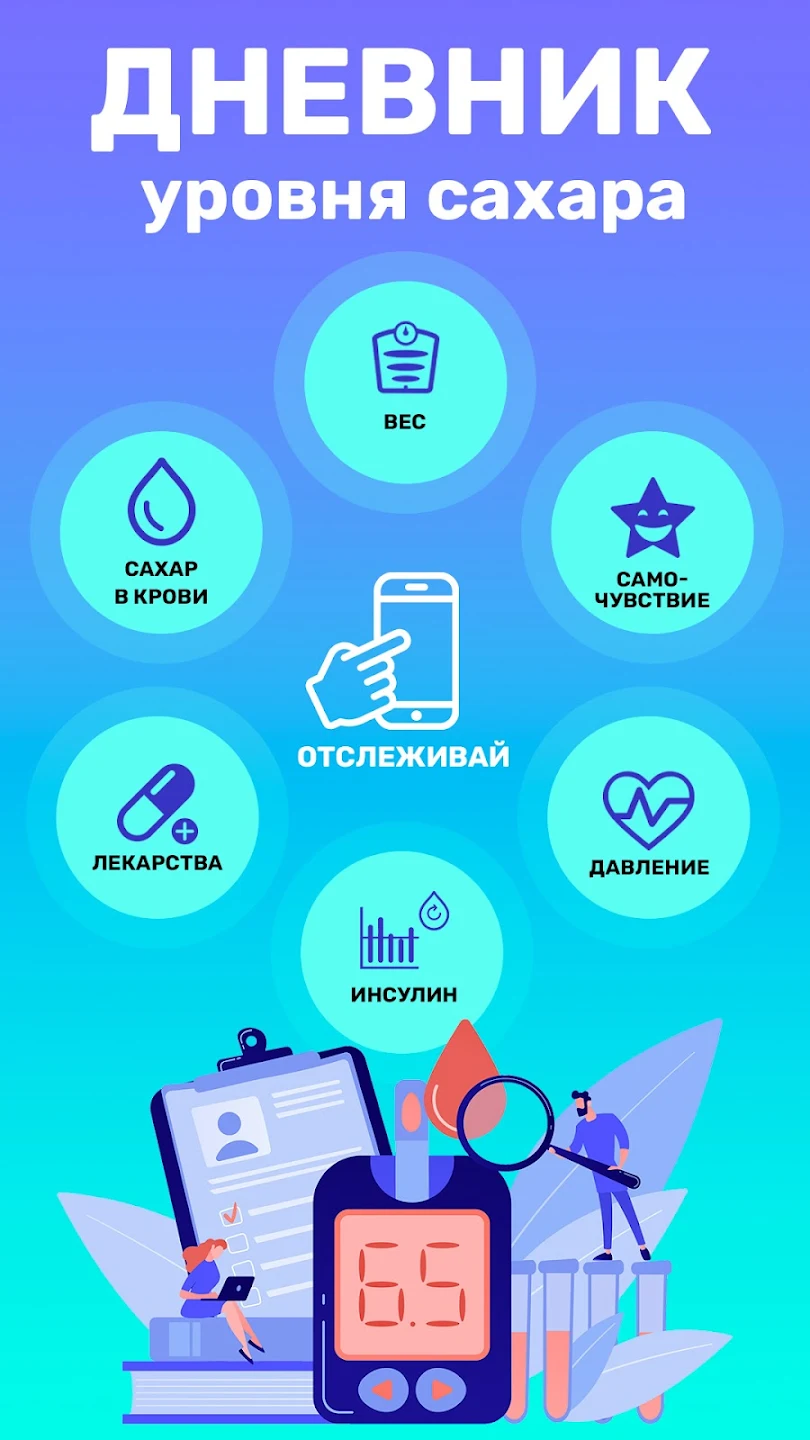 Если у Вас сахарный диабет 1 типа, и вам необходимо вести учет глюкозы, а также учет гемоглобина и других показателей – то приложение дневник диабета существенно упростит Вашу жизнь и позволит взять сахарный диабет под контроль. Все те, кто страдает гликемией смогут не только регулярно фиксировать свои показатели, но и анализировать их, чтобы понять свой организм!