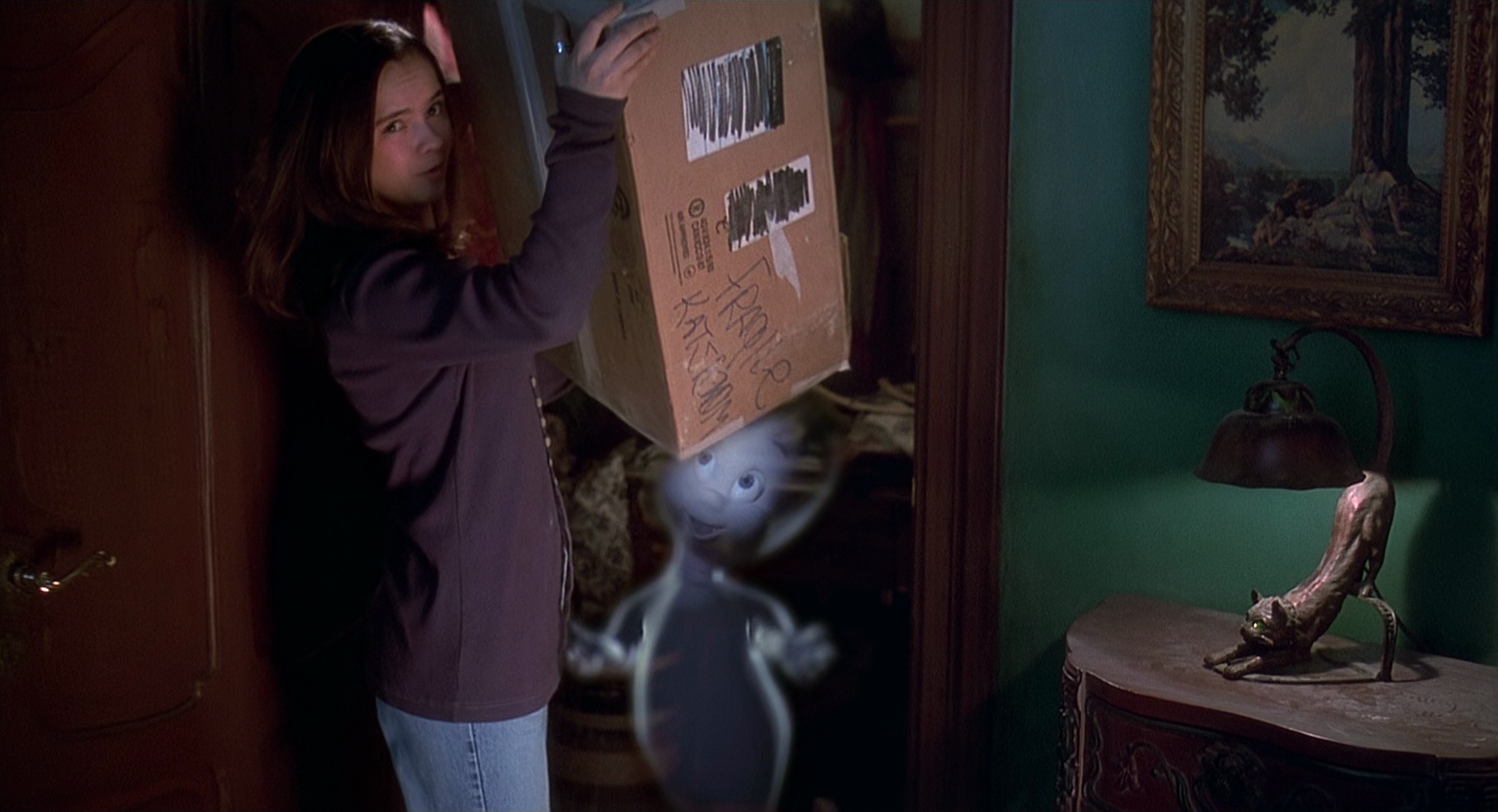 Описание: Каспер, маленькое дружелюбное привидение, не желает походить на своих хулиганствующих собратьев. Его дружба с девочкой-подростком Кэт помогает ей и ее отцу, доктору Харви, справиться с опасностями, поджидающими их в населенном призраками доме.
