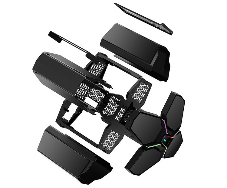 Quadstellar Infinity оснащён шестью панелями из закалённого стекла, которые предлагают уникальную перспективу для демонстрации компонентов по отдельности. Для каждого основного компонента ПК предназначена отдельная капсула. Передние панели каждой капсулы могут открываться для дополнительного притока воздуха.