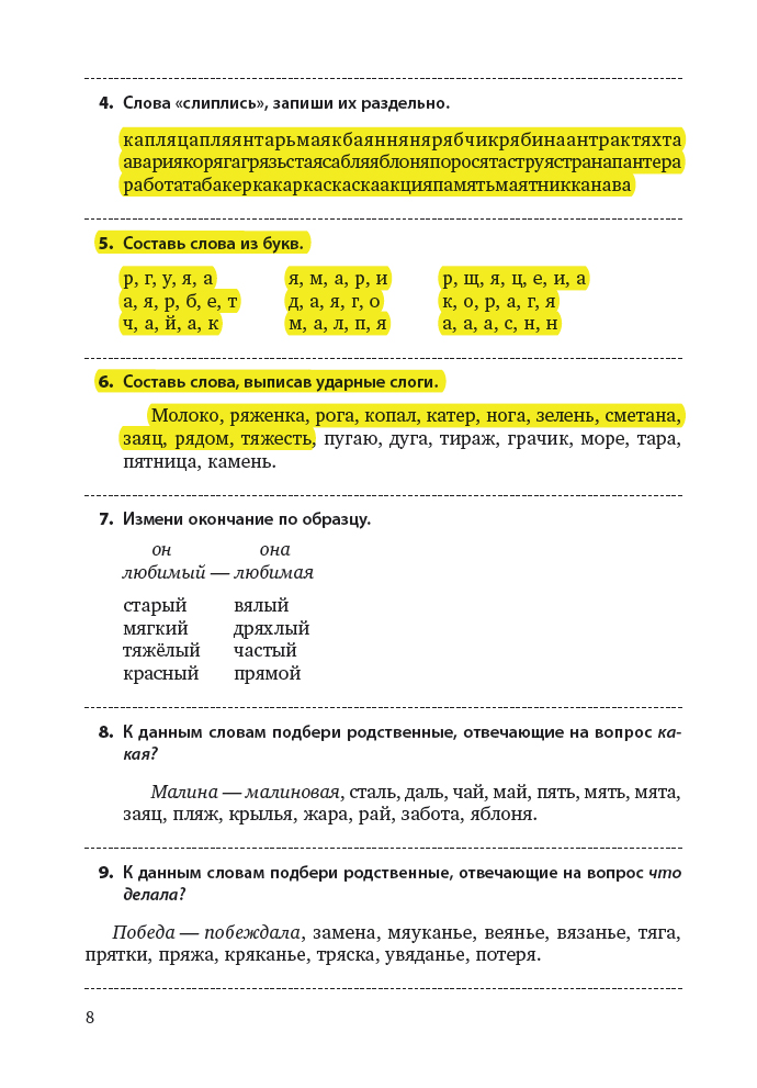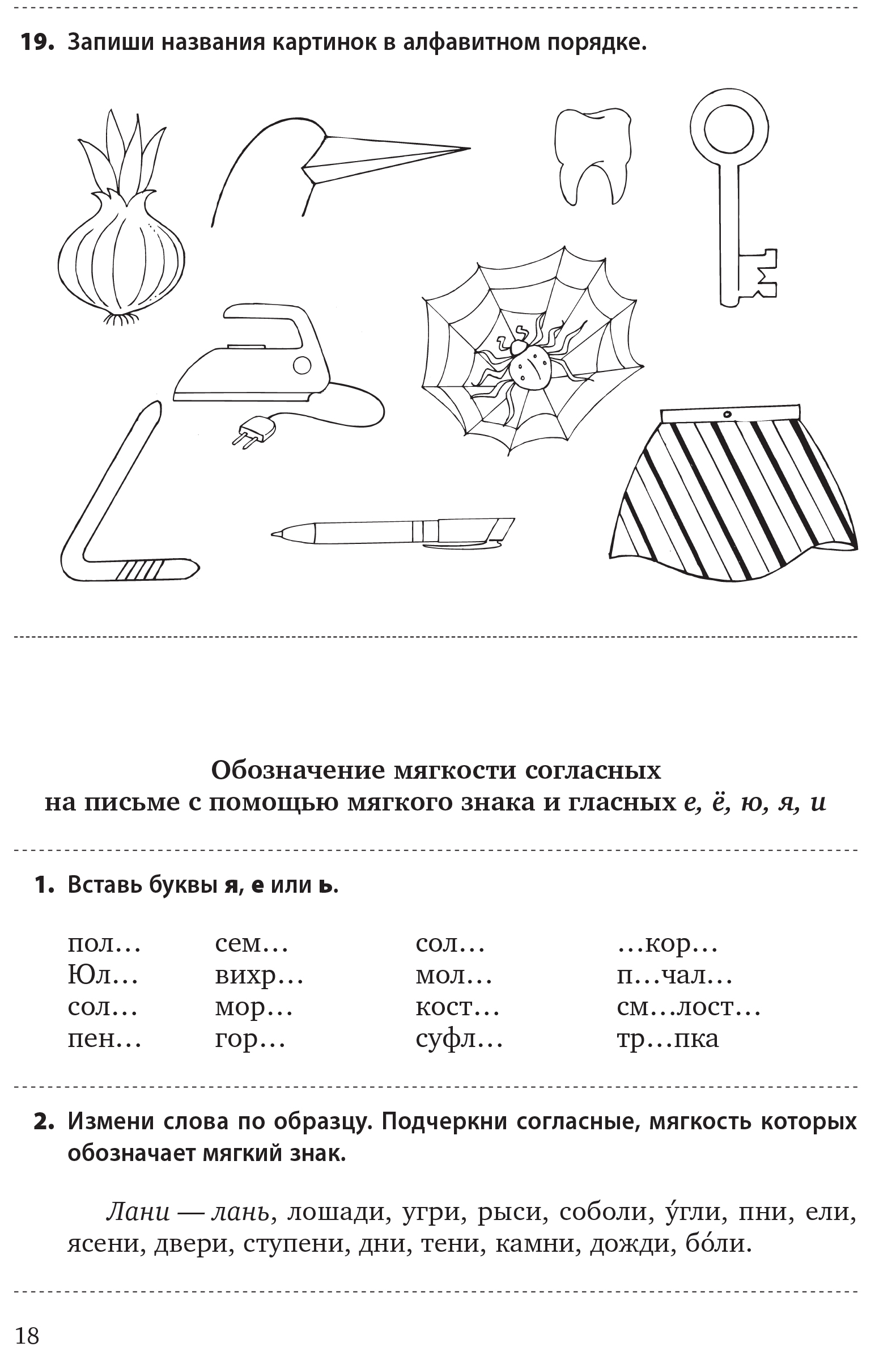 Задания, включённые в первую часть издания, способствуют формированию у ребёнка умения правильно обозначать на письме гласные и согласные (глухие/звонкие, твёрдые/мягкие) звуки. Во второй части книги собраны игры и задания, помогающие преодолеть ошибки школьника при написании оптически сходных букв.
