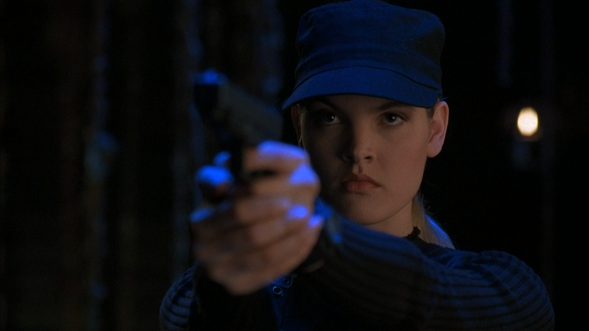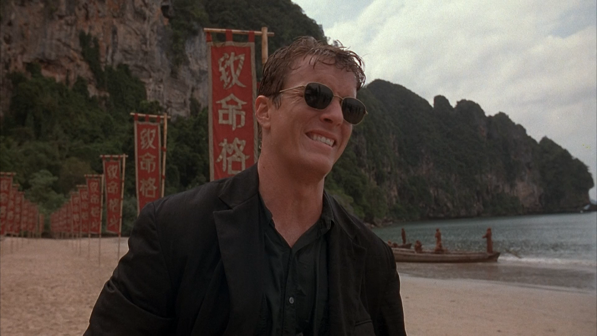 Смешно подмечать разные моменты в простодушном фильме Андерсона. Голливуд был куда щедрее, чем теперь. По этому фильму видно, насколько пофигу там тогда было на сюжеты игр, раз отдали режиссировать неопытному юнцу. А его любительский уровень замечаешь повсюду. Звуки комедийные. К примеру, припечатывает сначала Шанг Цунг Лю Канга лицом к полу, затем за волосы поднимает голову. Слышим звук отрывания чего-то липкого. И т.п. С детства не мог понять, что делает Китана с шеей Канга в поединке. Звук опять такой, что создается впечатление, будто чем-то сильно царапает кожу. Еще и грива у него ветром обволакивает шею… На пленке разобрать не представлялось возможным, я считал, что темная полоса вокруг шеи — кровь. (При том, что крови в фильме нет практически.) Смотрел-смотрел сейчас, уже и качество Full HD, и все равно не разобрать, чего они хотели изобразить. Построены сцены как в комиксе. Блэйд следит за таинственным кораблем, высматривает на нем Кано, завидев, срывается к нему. На общем плане корабль уже отошел от пирса и задом наперед уплывает в море… Куда ты бежишь? Догонять вплавь? Эпизод с облавой на дискотеке в детстве напоминал кадры из других боевиков, но я не думал даже, что молодой реж банально повторял их за полюбившимися хитами. Вот и тут Соня пафосно расстреливает каких-то мимолетных чуваков прям посреди танцующих, и патлатые плохиши отлетают в стеклянные стены, точно также как терминатор вышибал спиной окна ночного клуба, сбитый с ног пулями Кайла Риза… А Эшби хорош, и симпатия к нему, пожалуй, только окрепла. Его Кейдж мне нравился. В ’95-ом я сравнивал его с игровым Даниэлем Песина, ориентировался на того и не знал, кто из них лучше. Линден белоручка, своей утонченностью и привлекает внимание. В нем действительно ощущается денди. Возможно, Ван Дамм мог бы дать миру самого классного Джонни, но помню, как отстаивал Эшби в разговорах... Режиссер в юмористическом эпизоде с киносъемкой как будто спецом подобран с закосом на Спилберга.