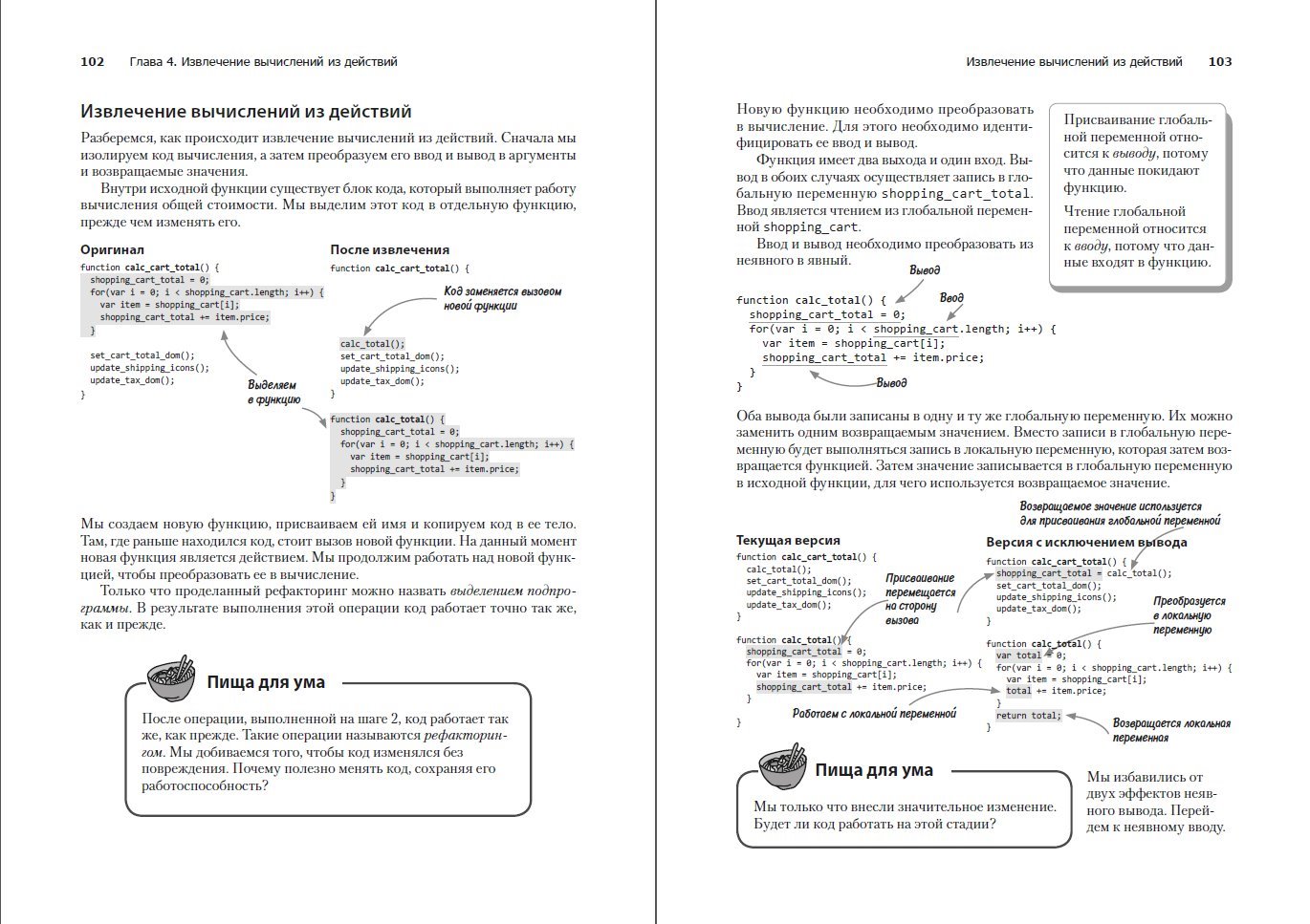 Описание:Кодовые базы разрастаются, становясь всё сложнее и запутаннее, что не может не пугать разработчиков. Как обнаружить код, изменяющий состояние вашей системы? Как сделать код таким, чтобы он не увеличивал сложность и запутанность кодовой базы? Большую часть «действий», изменяющих состояние, можно превратить в «вычисления», чтобы ваш код стал проще и логичнее. Вы научитесь бороться со сложными ошибками синхронизации, которые неизбежно проникают в асинхронный и многопоточный код, узнаете, как компонуемые абстракции предотвращают дублирование кода, и откроете для себя новые уровни его выразительности. Книга предназначена для разработчиков среднего и высокого уровня, создающих сложный код. Примеры, иллюстрации, вопросы для самопроверки и практические задания помогут надежно закрепить новые знания.