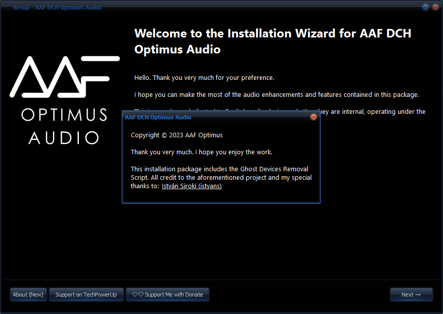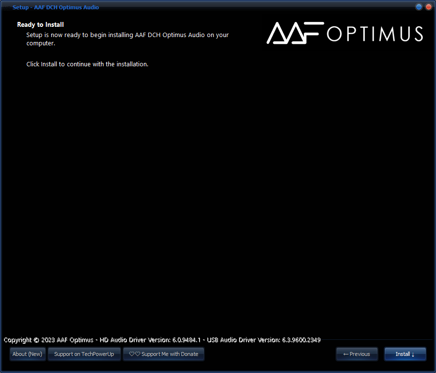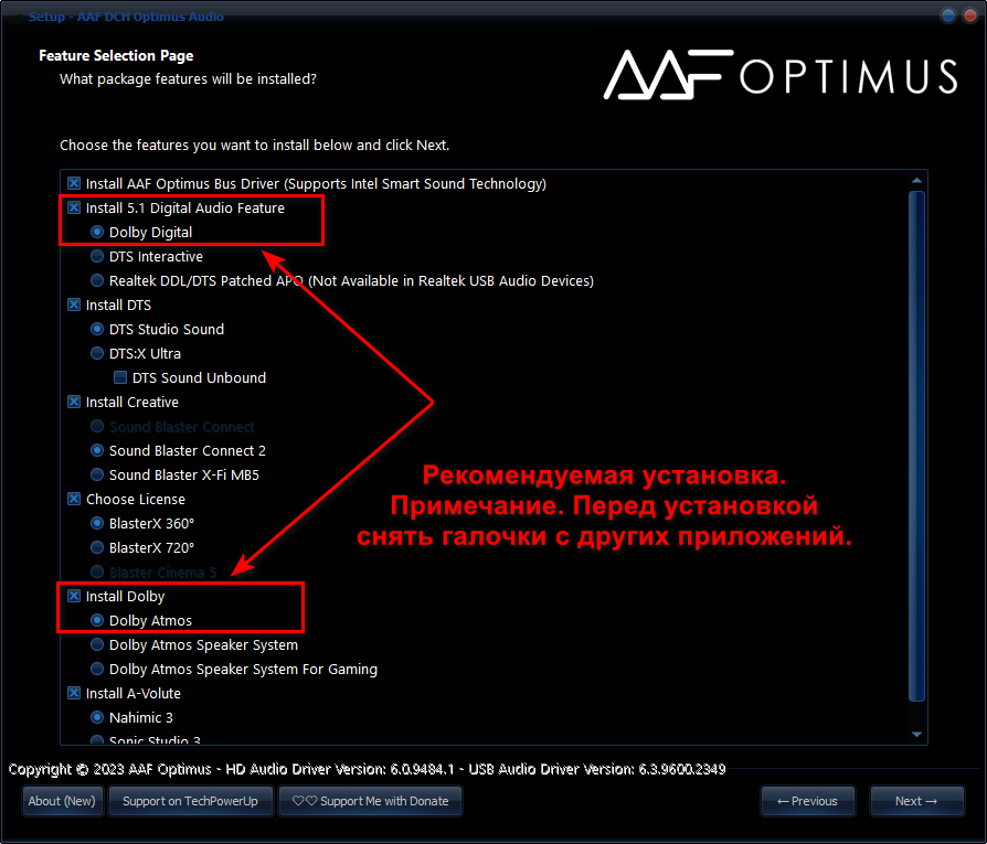 Прежде чем устанавливать новую версию AAF DCH Optimus Sound 10.11.2349.9484 Realtek Mod by AlanFinotty - удалить предыдущую версию AAF DCH Optimus Sound или драйвер Audio Driver Realtek - перезагрузить ПК, после устанавливаем AAF DCH Optimus Sound 10.11.2349.9484 Realtek Mod by AlanFinotty.